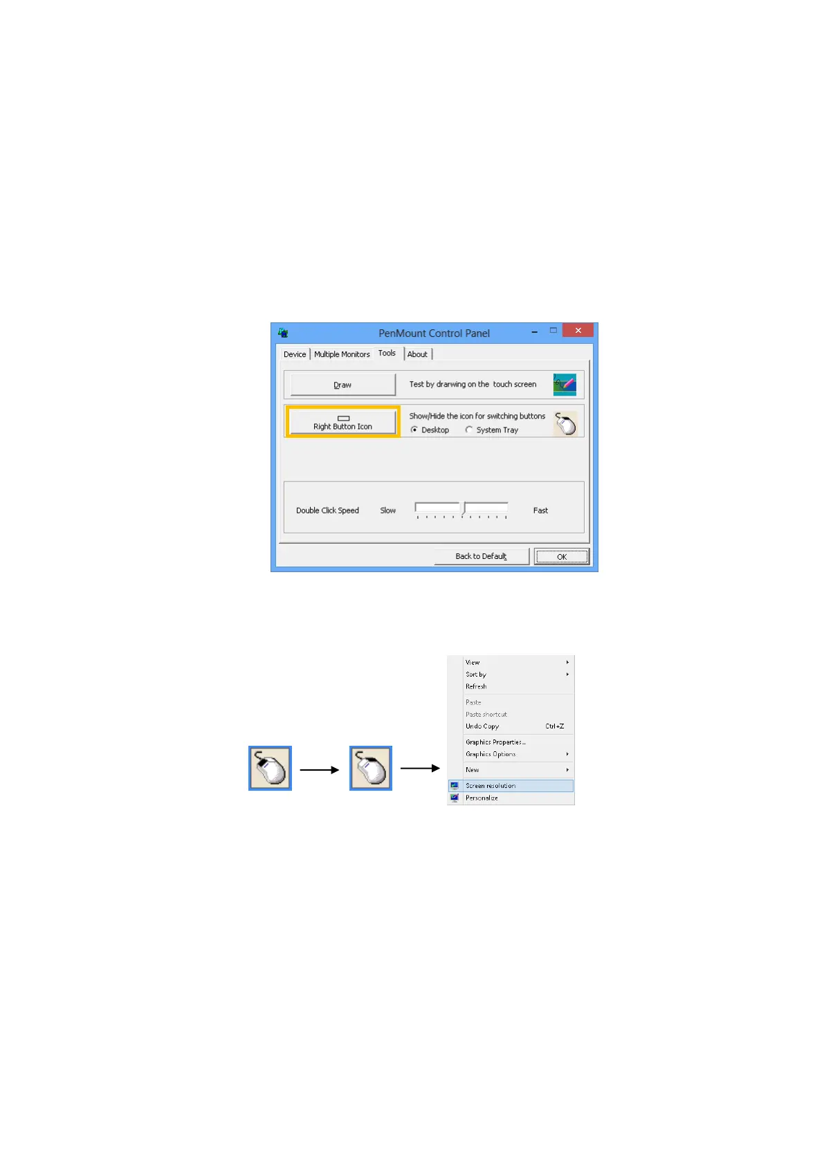 right button. For mouse devices, the PenMount supports two ways for simulating right