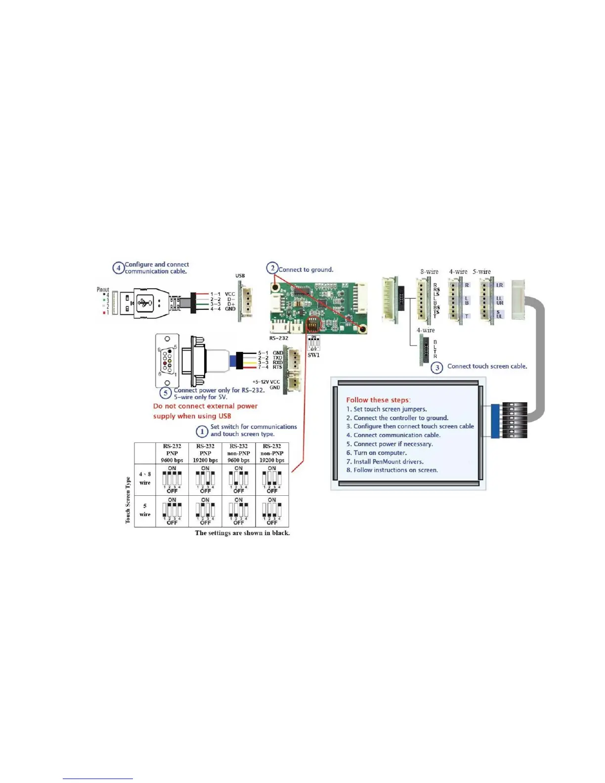 PenMount Touchscreen 6000 - Connect a 6200 C Control Board (for both RS-232 & USB Interface)