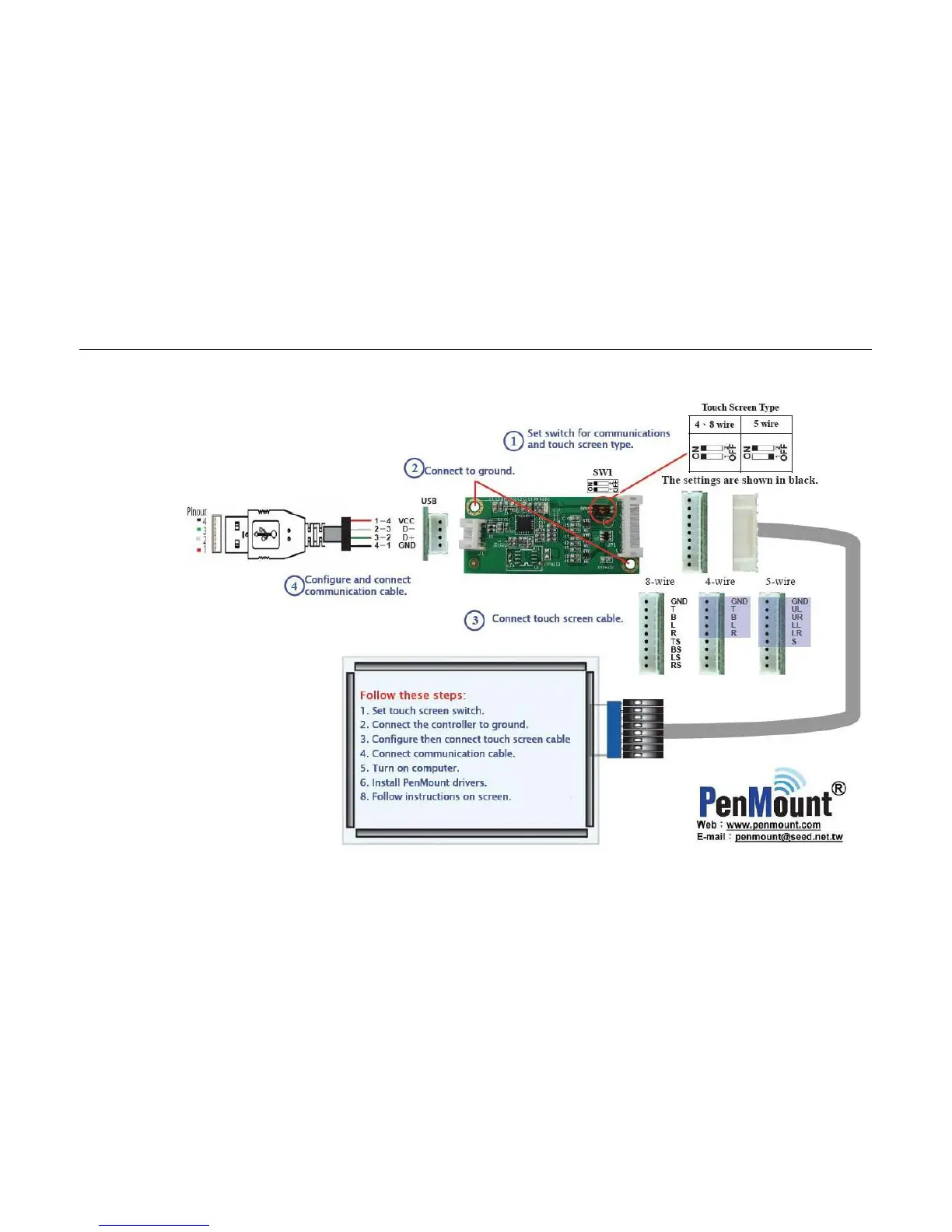 PenMount Touchscreen 6000 - Connect a 6300 Control Board (for USB Interface Only)