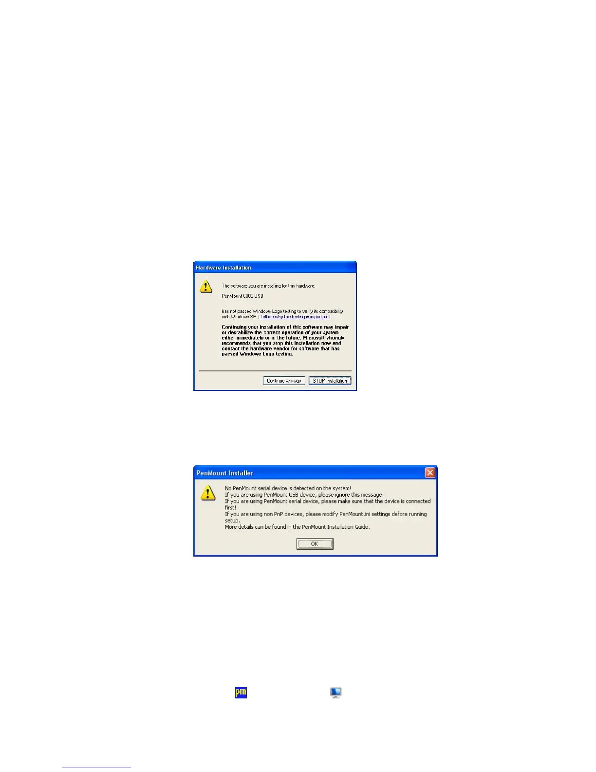 6. If the PenMount serial device isn’t detected by system, a message box as