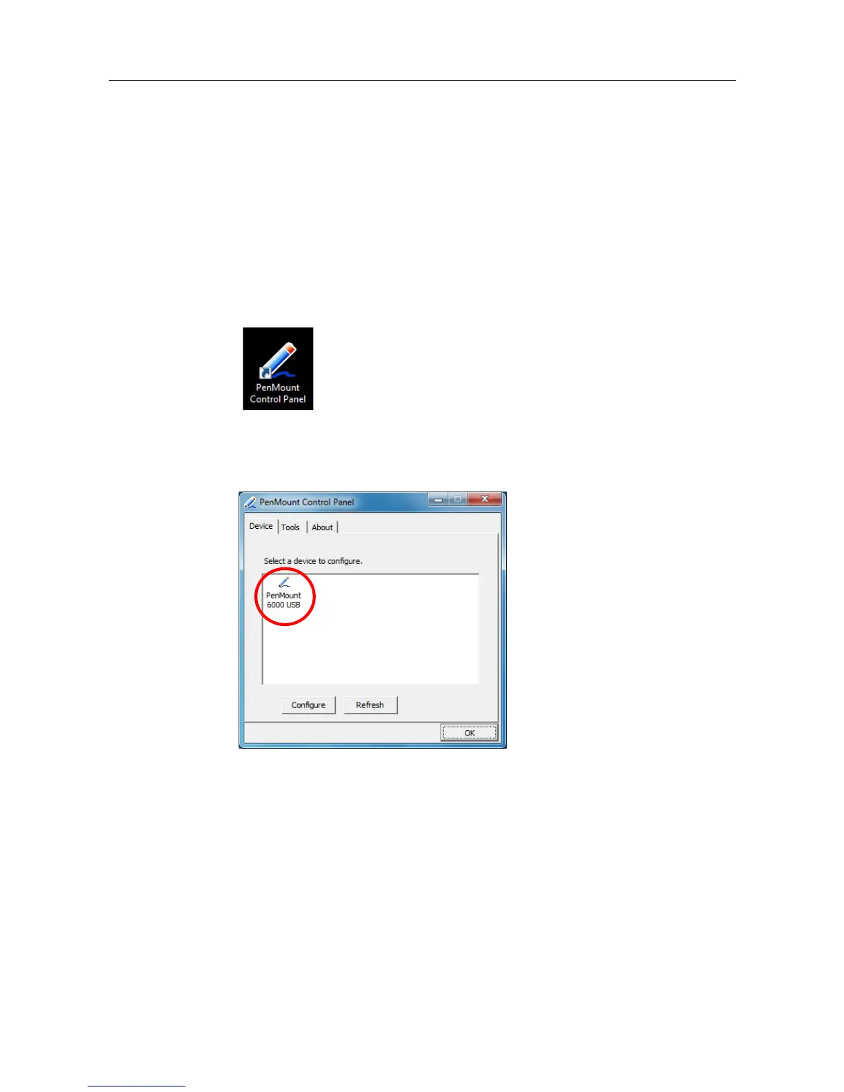 PenMount 6000 USB under Device tab. In Device tab, you can see the
