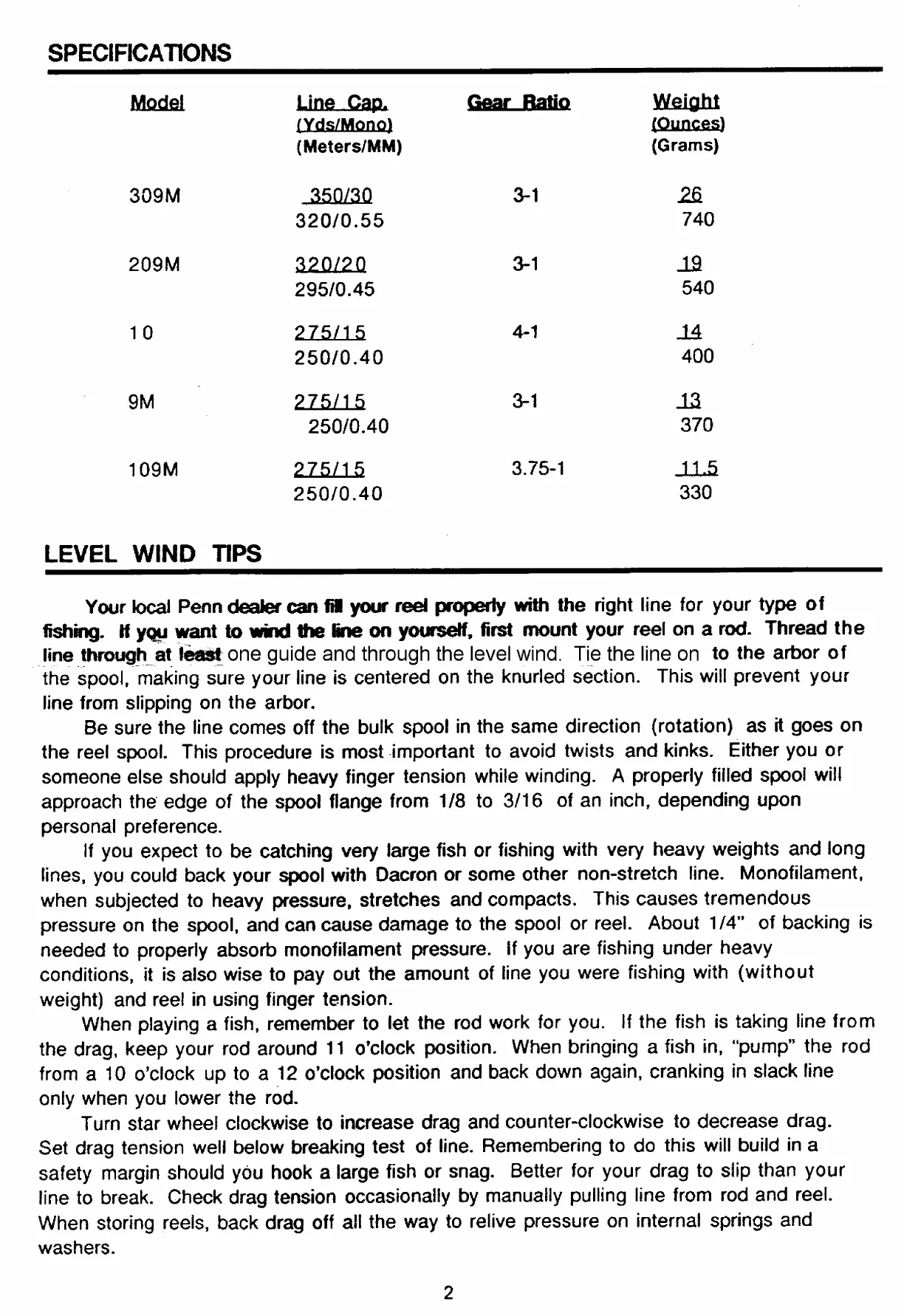 line to break. Check drag tension occasionally by manually pulling line from rod and reel.