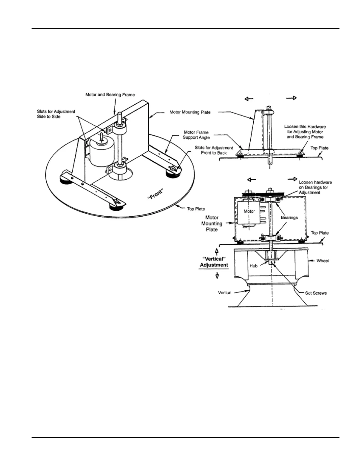 1. If “Front to Back” adjustment is required, loosen both motor