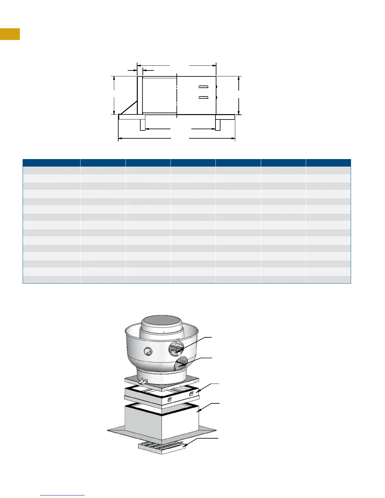 refers to Roof Opening. “E” dimension is inside base of fan. For FT (Fatrap) units, curbs are cantless, 18” high and optionally vented.