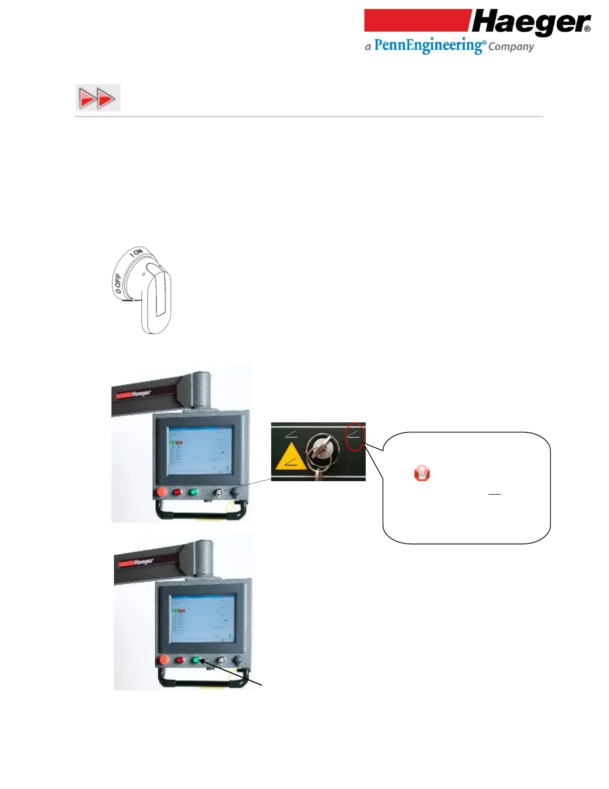 1. Turn on the machine by turning the main disconnect switch to the ON