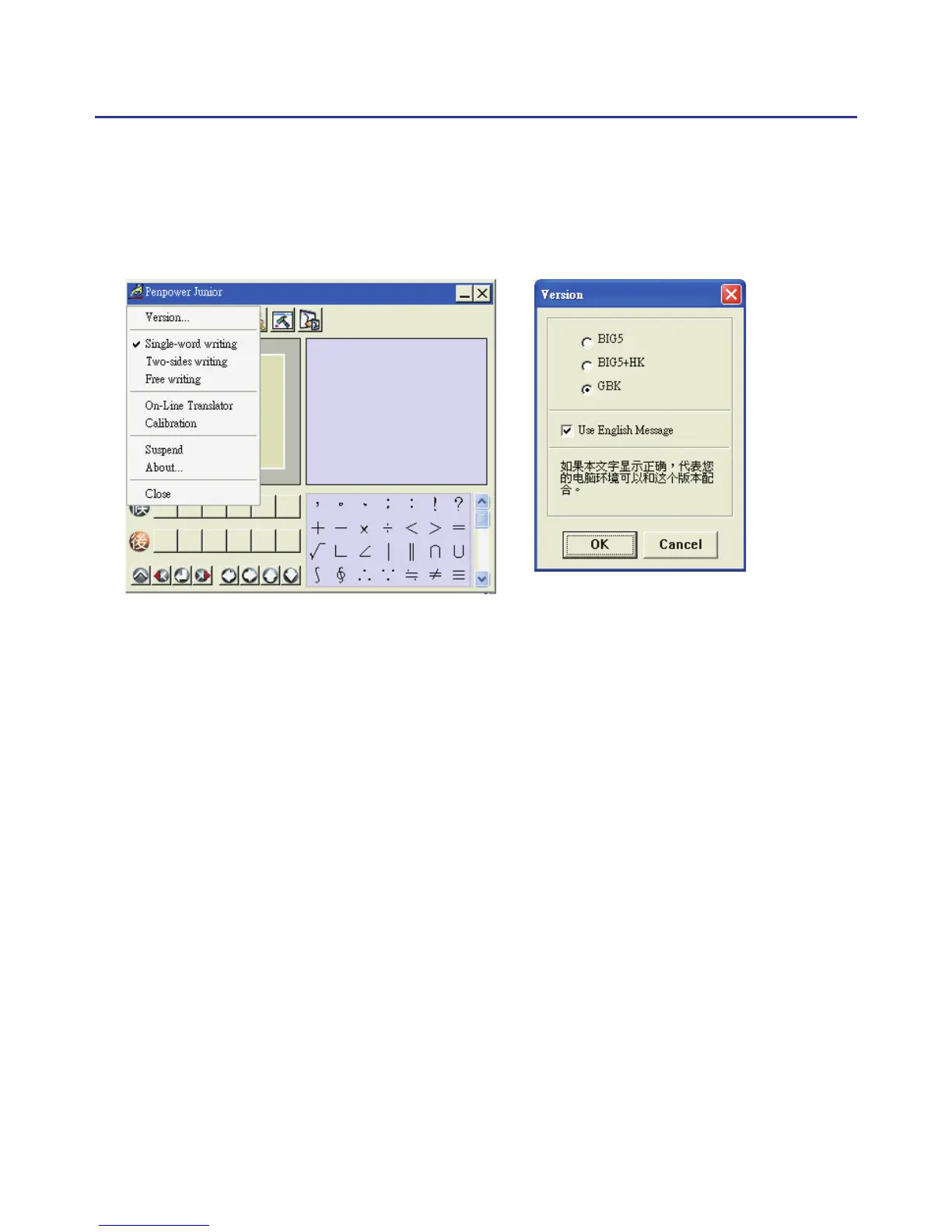 1. In Mouse mode, open the Penpower Junior options then select “Version