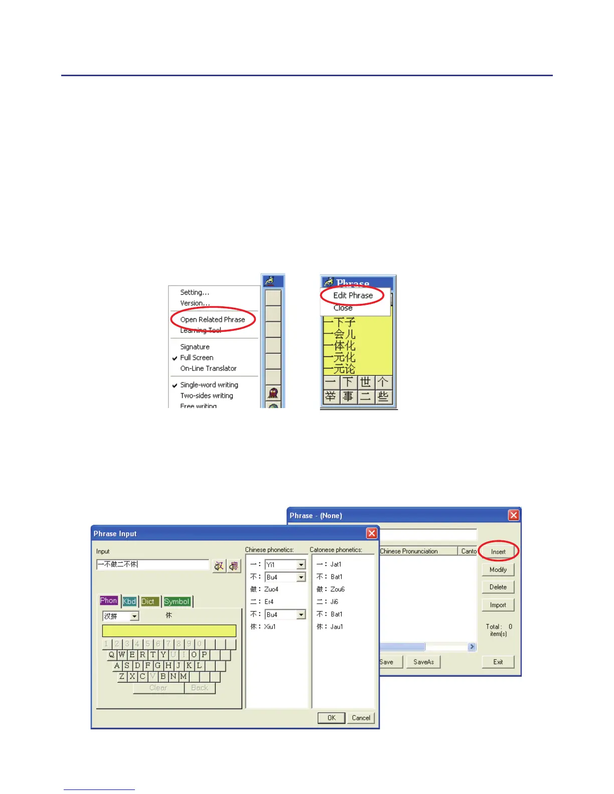 2. Click “Insert” to open the phrase input dialog. You can input a new