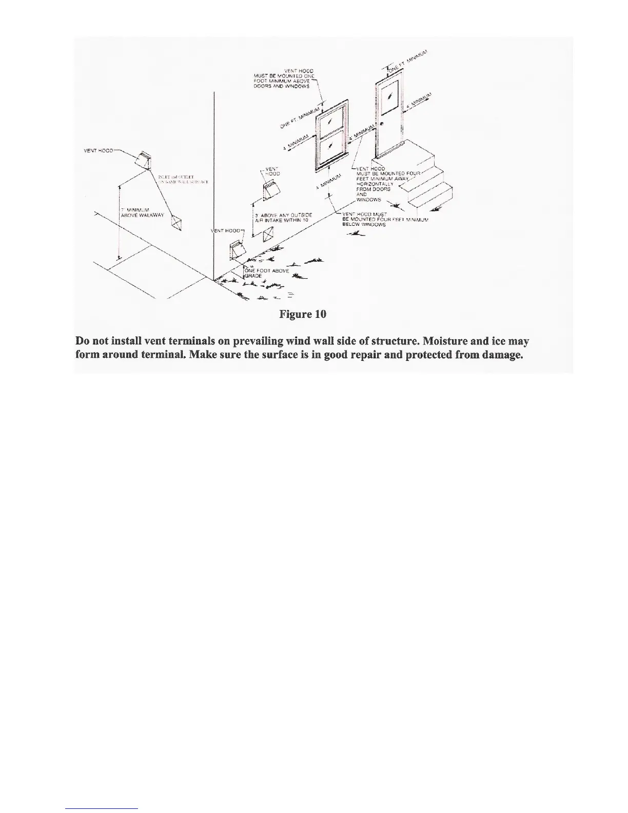 - The vent hood must be placed at least 12in. above the total accumulated snow level and