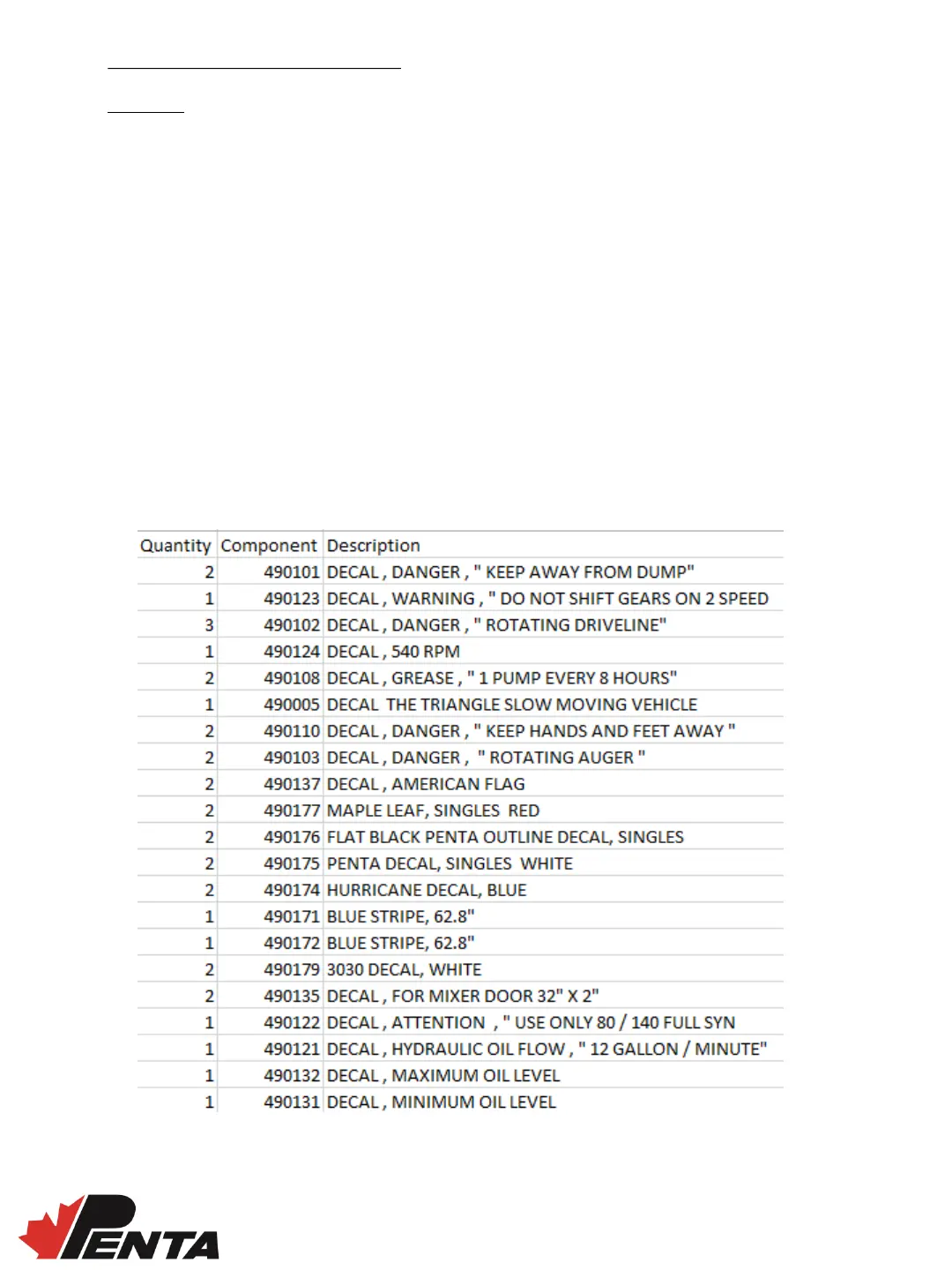 removed, replacements are available through Penta machinery dealer, or from PENTA TMR
