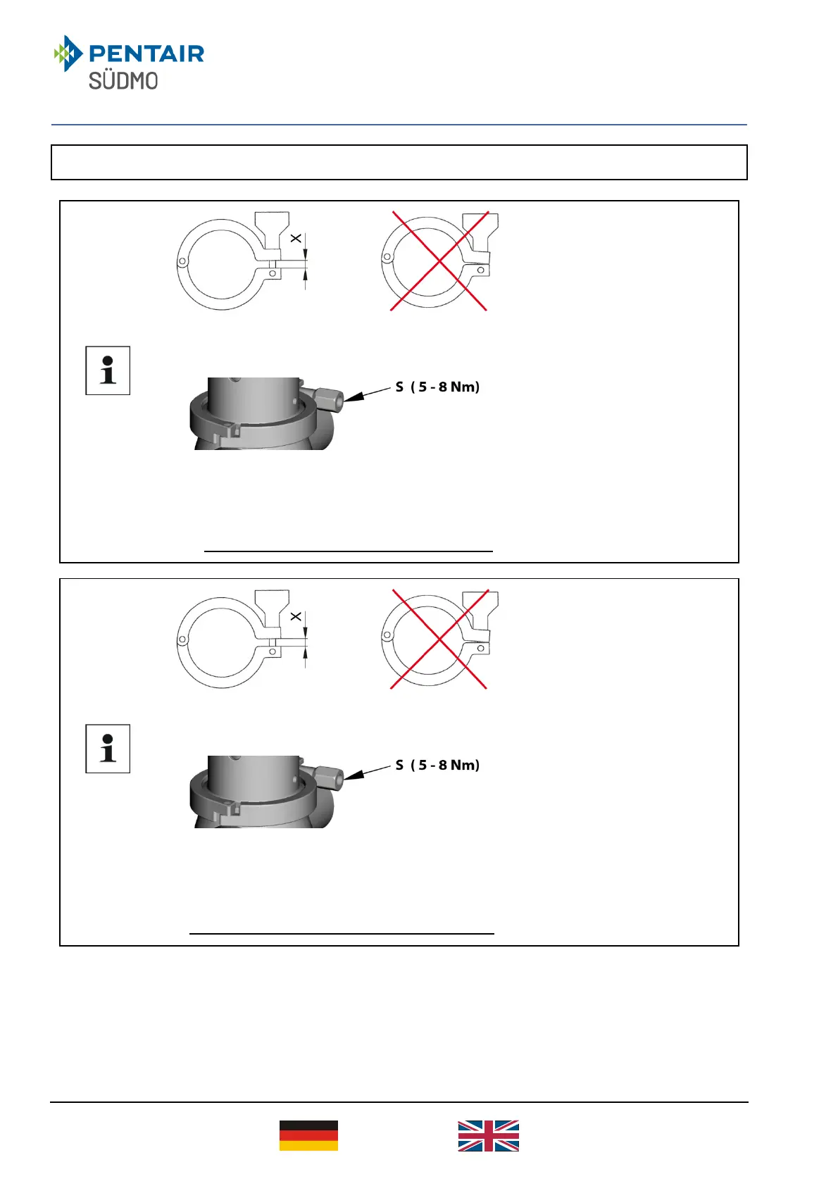 → Locked torque 5 – 8 Nm.