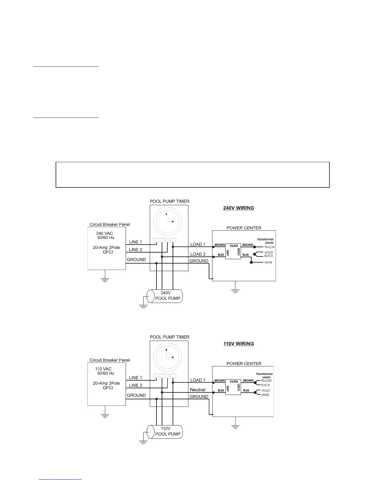 the Power Center to the pump side of the relay located in the IntelliTouch Load Center. This