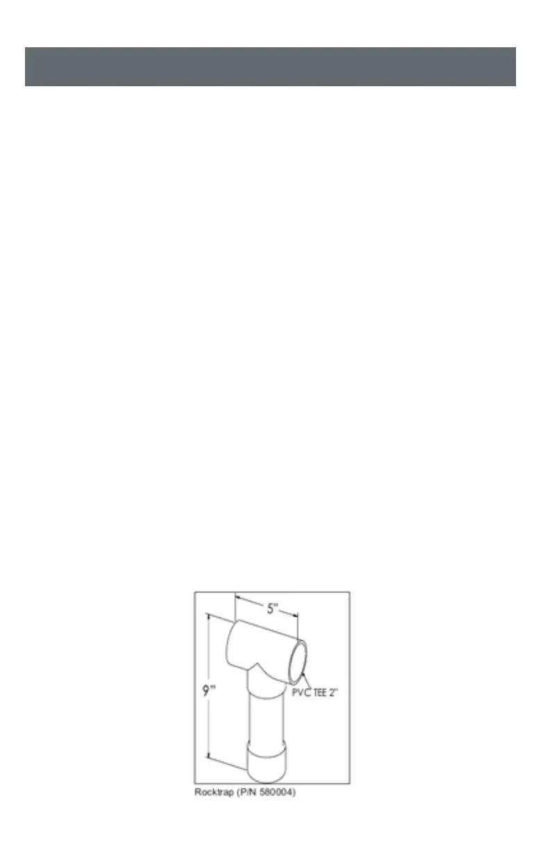 • For installation subject to heavy debris, install the optional rock trap (P/N 580004).