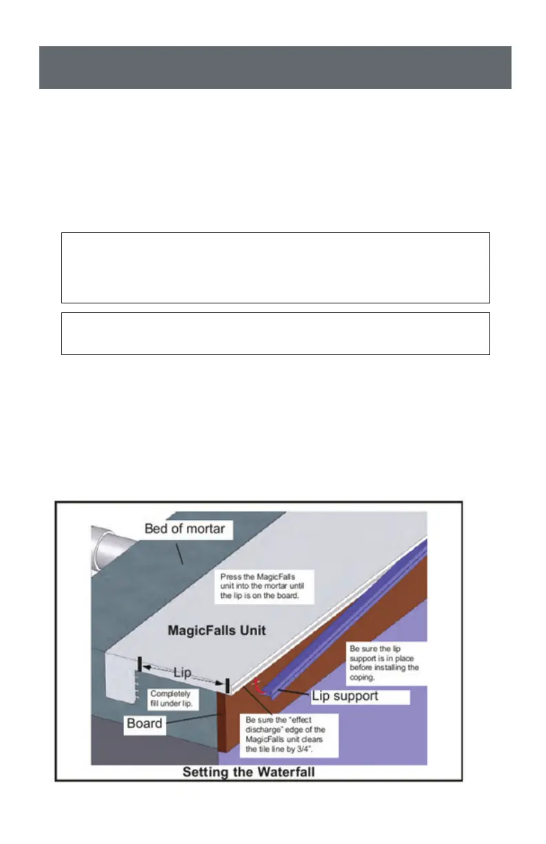 Create a bed of mortar in the notch in the bond beam and press the waterfall