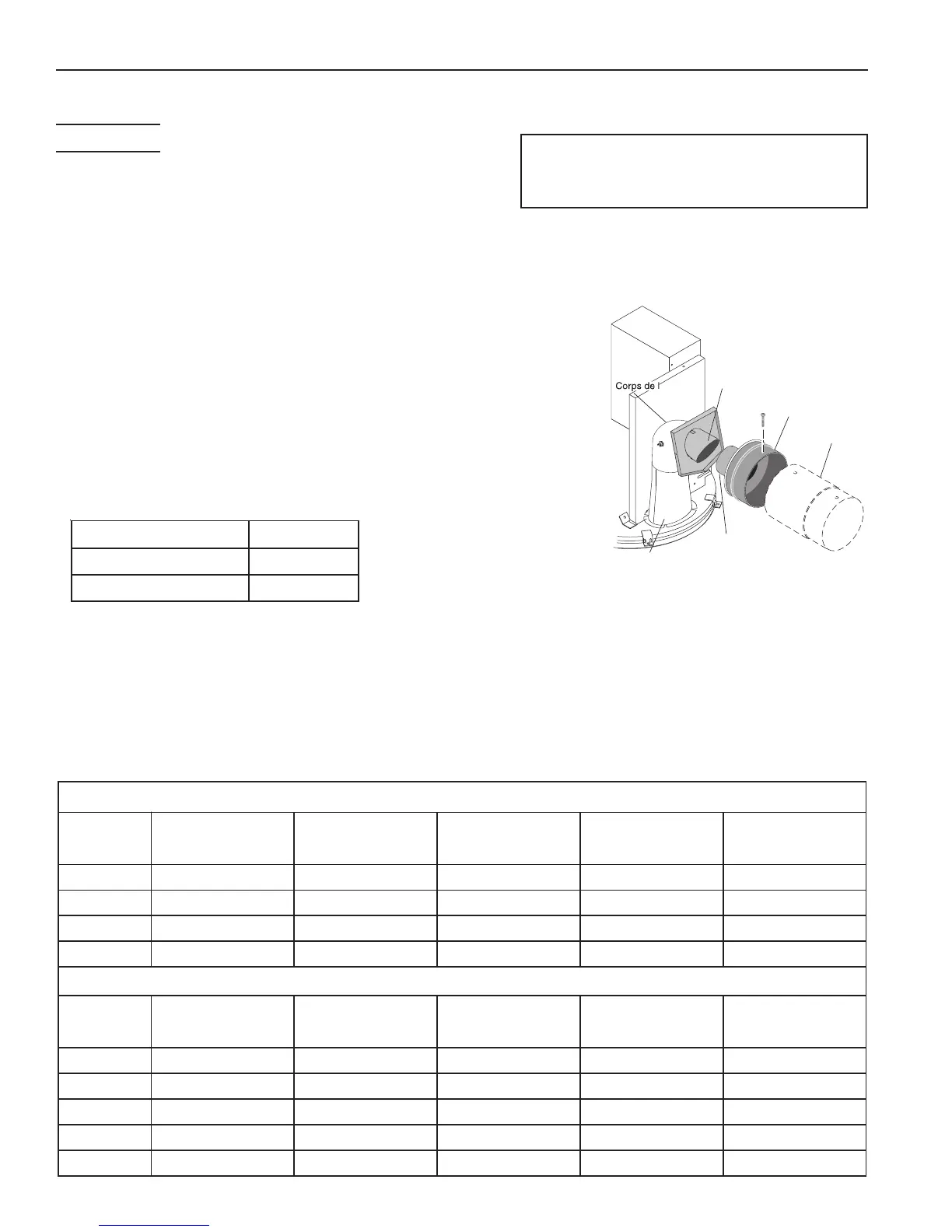 REMARQUE : Les données du tableau 7 s'appliquent à des installations dont la longueur de conduite latérale totale (c.-à-d., la
