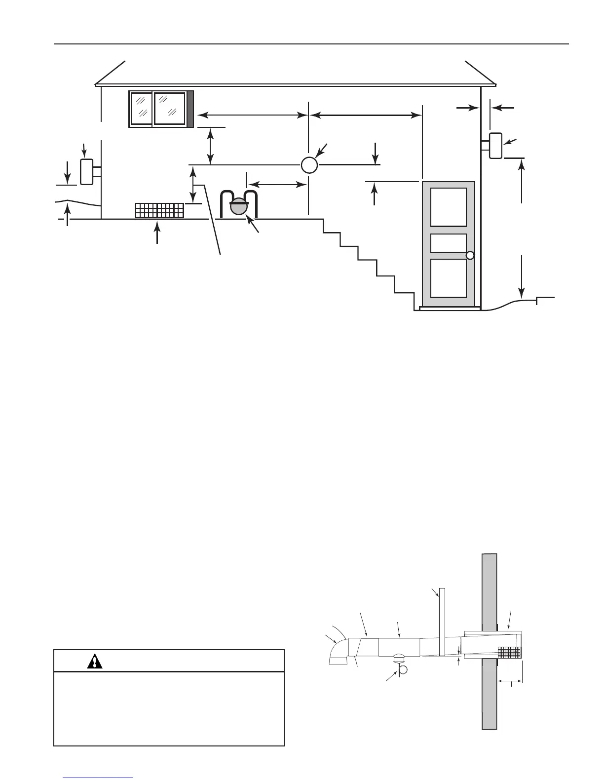 • à au moins 4 pi en dessous ou à l'horizontale de, ou 1 pi au-dessus, de toutes portes, fenêtres ou entrées gravitationnelles
