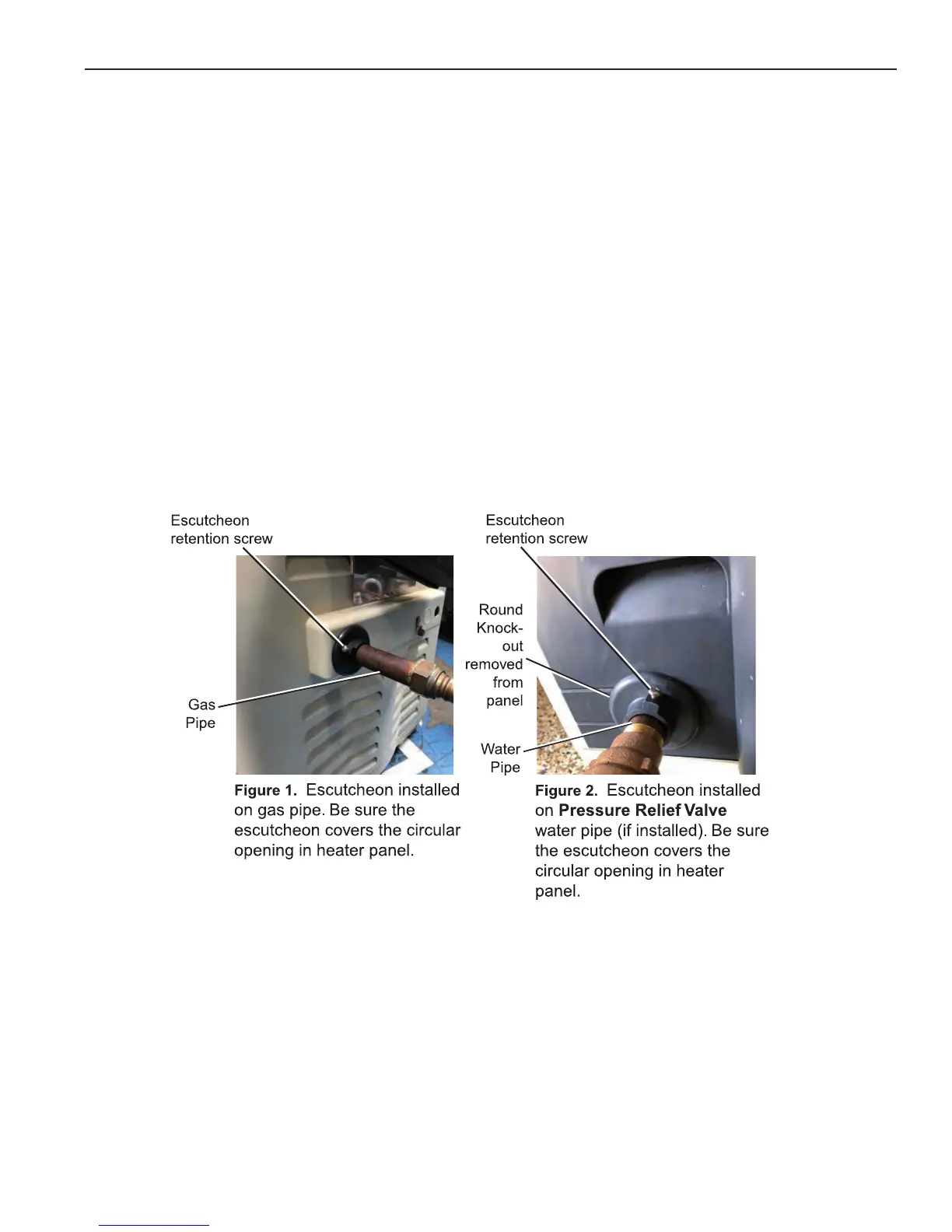 second escutcheon on the Pressure Relief Valve water pipe. See Figure 2. Note: If required, before installing the escutcheon,
