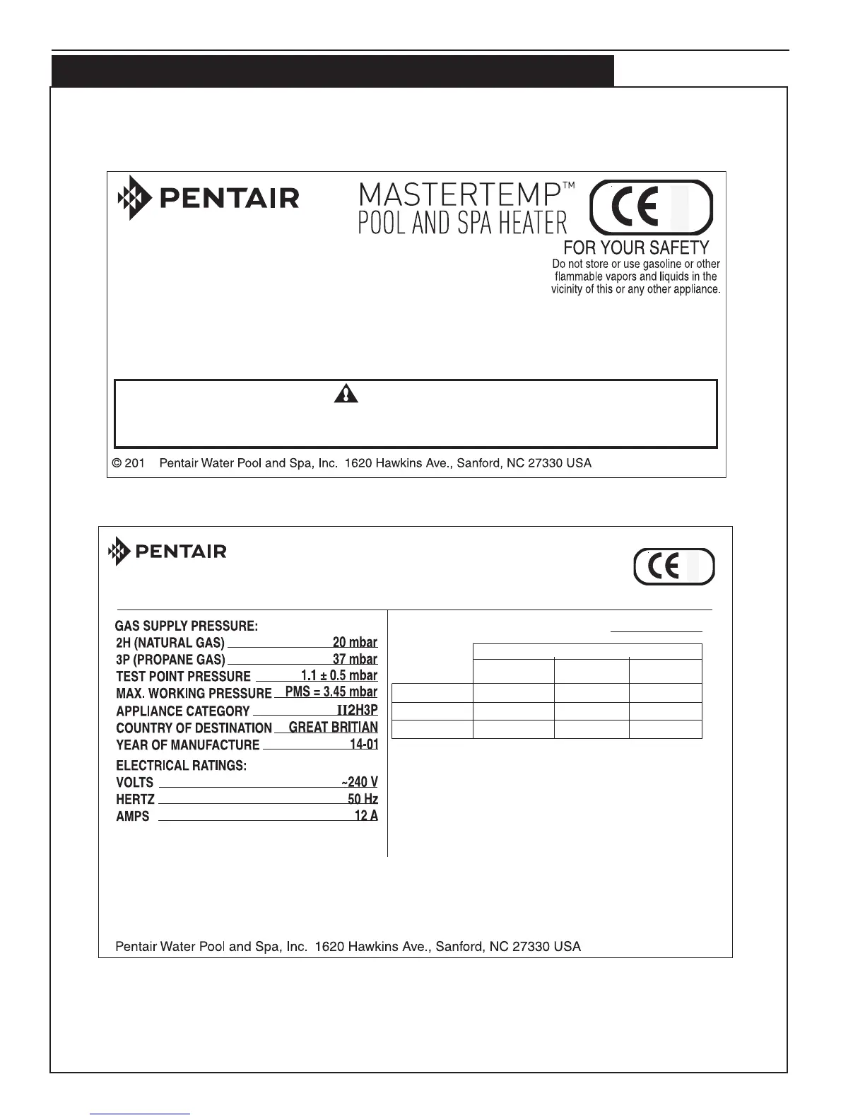 GAS TYPES: 2H (G20) Natural Gas; 3P (G31) Propane Gas