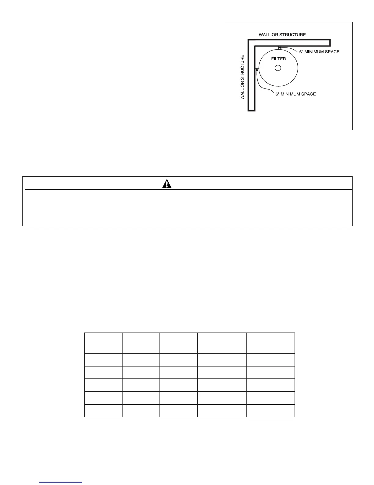 cleaning and servicing. This distance will vary with the model of filter you are using. See Table 1 for the required verticl