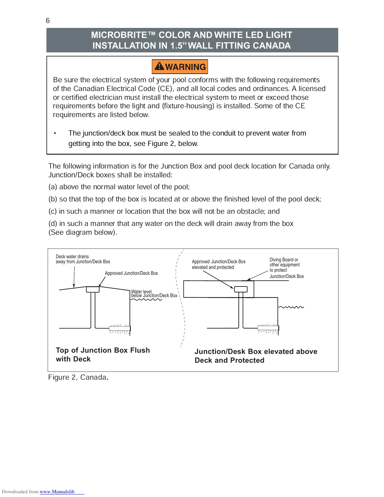 The following information is for the Junction Box and pool deck location for Canada only.