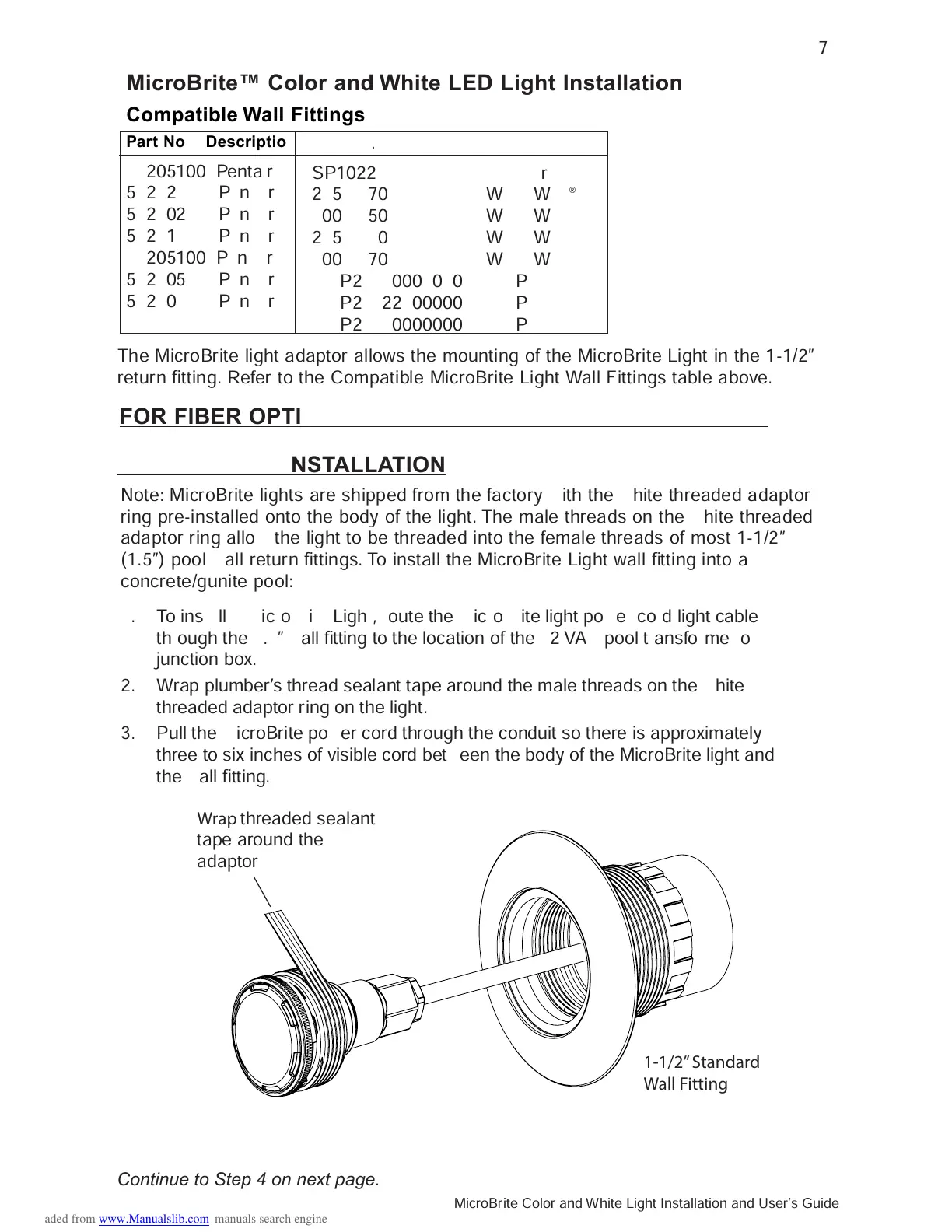 return fitting. Refer to the Compatible MicroBrite Light Wall Fittings table above.