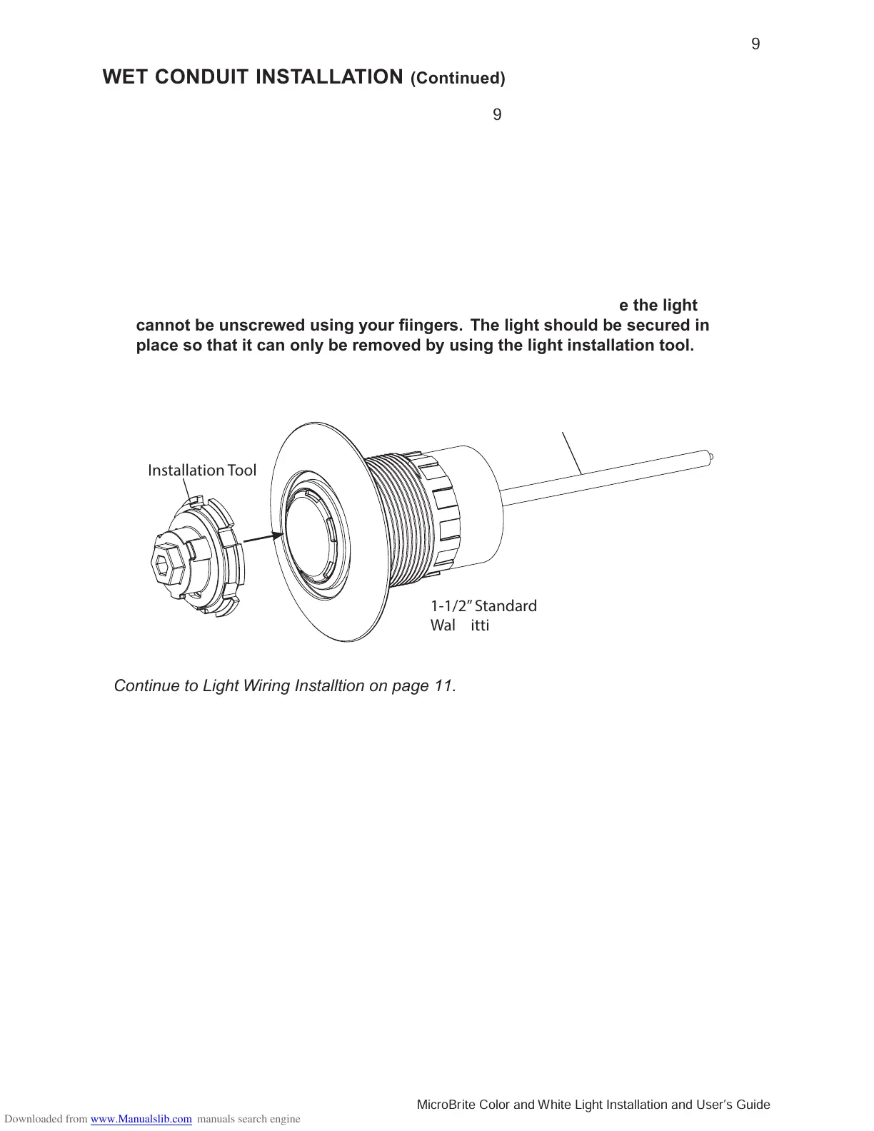 Continue to Light Wiring Installtion on page 11.
