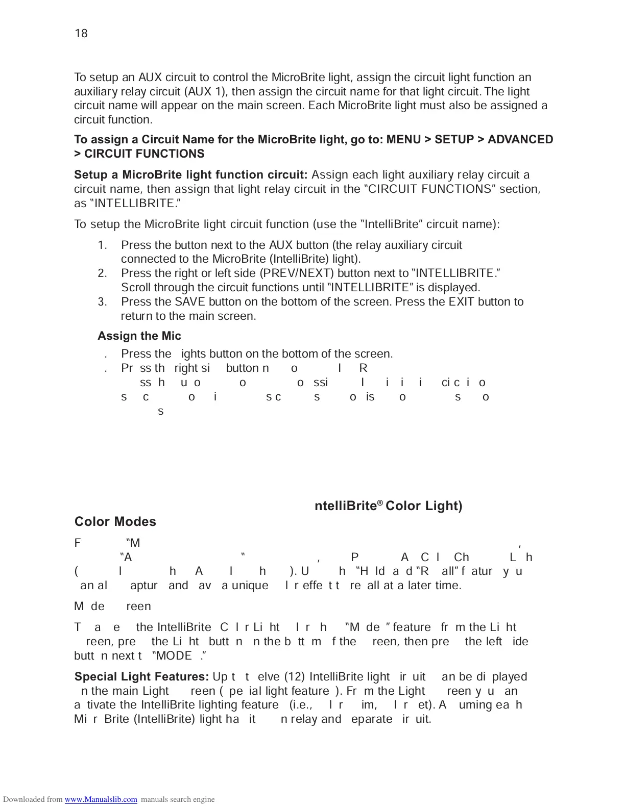 cuits which can be used for the MicroBrite (IntelliBrite) lighting features. Select