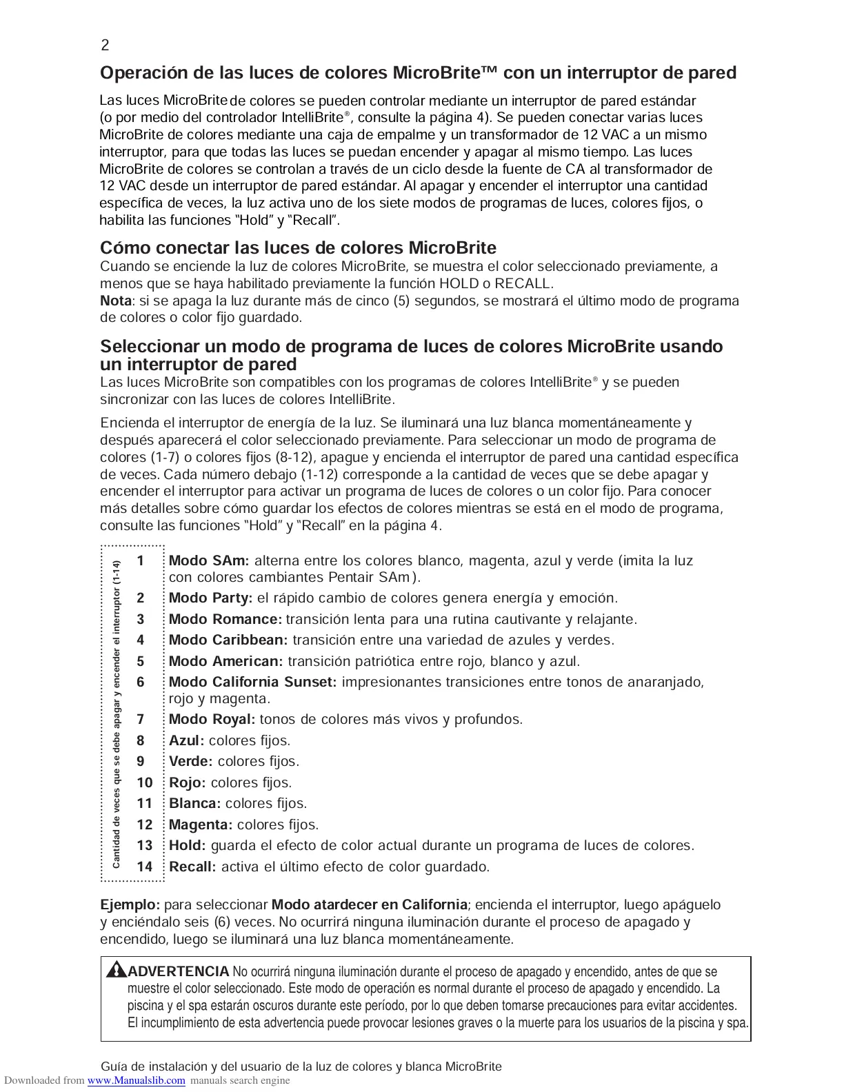 Guía de instalación y del usuario de la luz de colores y blanca MicroBrite Guía de instalación y del usuario de la luz de colores y blanca MicroBrite