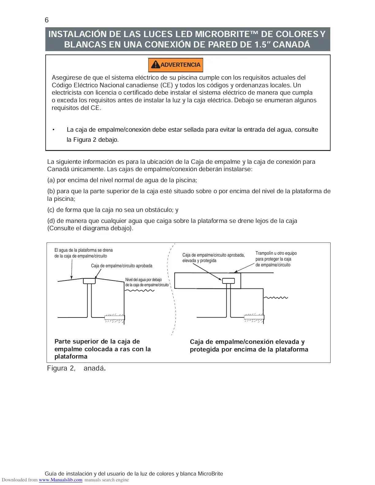 Canadá únicamente. Las cajas de empalme/conexión deberán instalarse:
