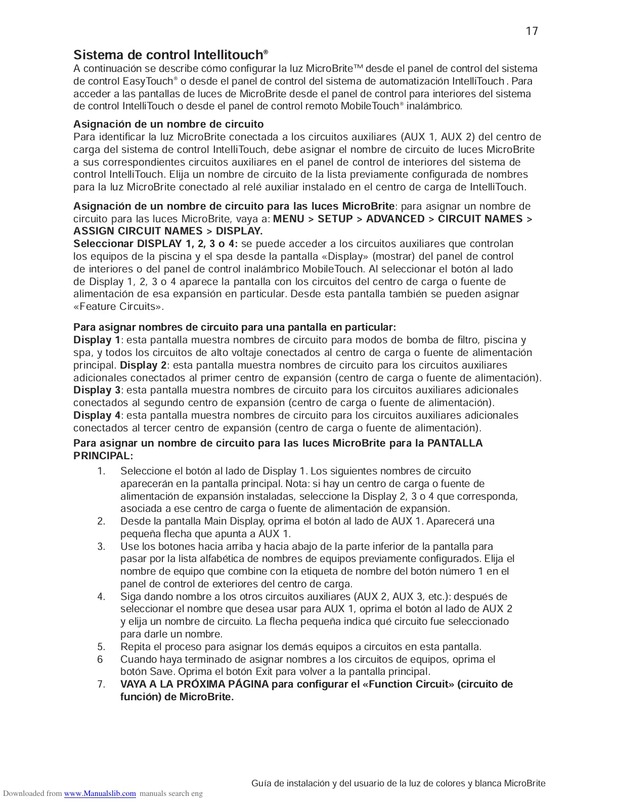carga del sistema de control IntelliTouch, debe asignar el nombre de circuito de luces MicroBrite