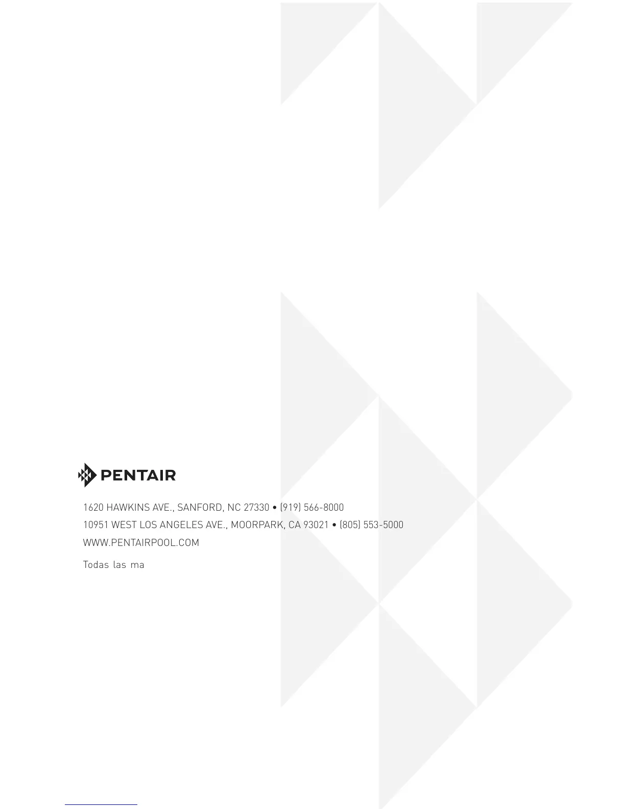 comerciales o marcas registradas de Pentair Water Pool and Spa, Inc. o de sus compañías asociadas en