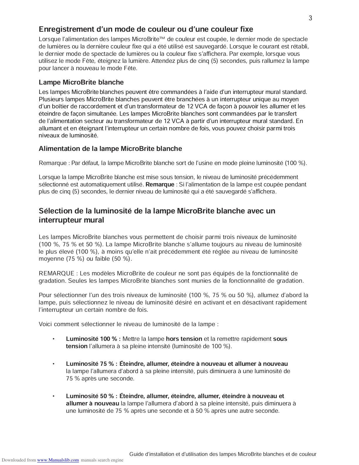 Guide d’installation et d’utilisation des lampes MicroBrite blanches et de couleur Guide d’installation et d’utilisation des lampes MicroBrite blanches et de couleur