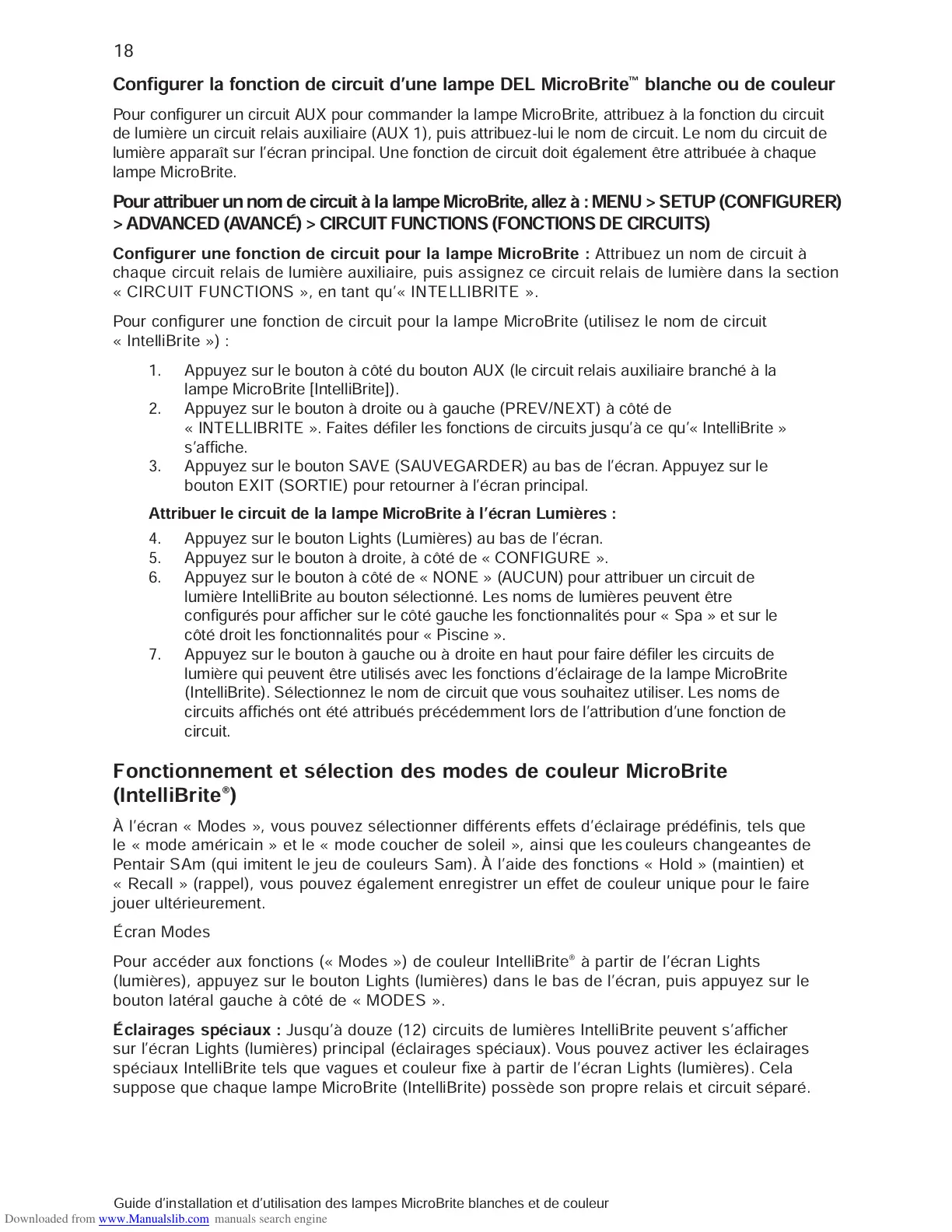 suppose que chaque lampe MicroBrite (IntelliBrite) possède son propre relais et circuit séparé.