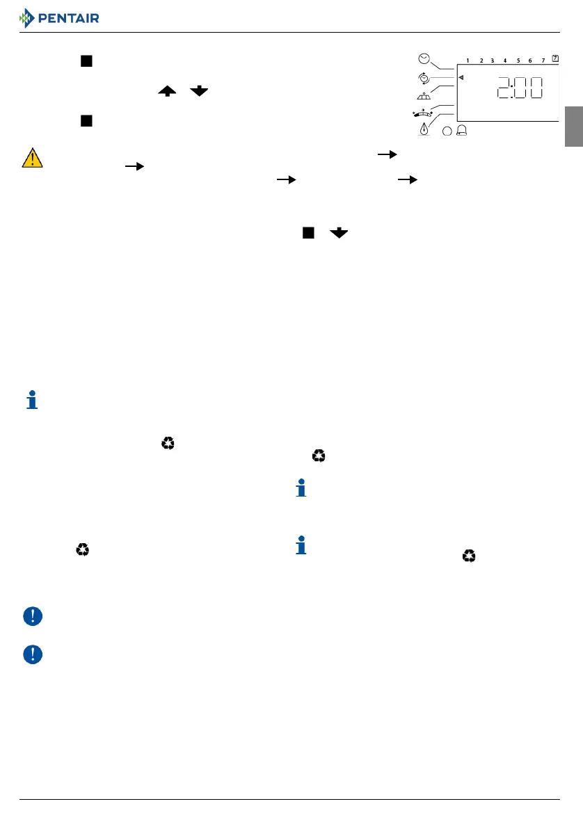 Jours entre deux régénérations (contrôleur chronométrique 740 uniquement) Forçage calendaire (contrôleur à la