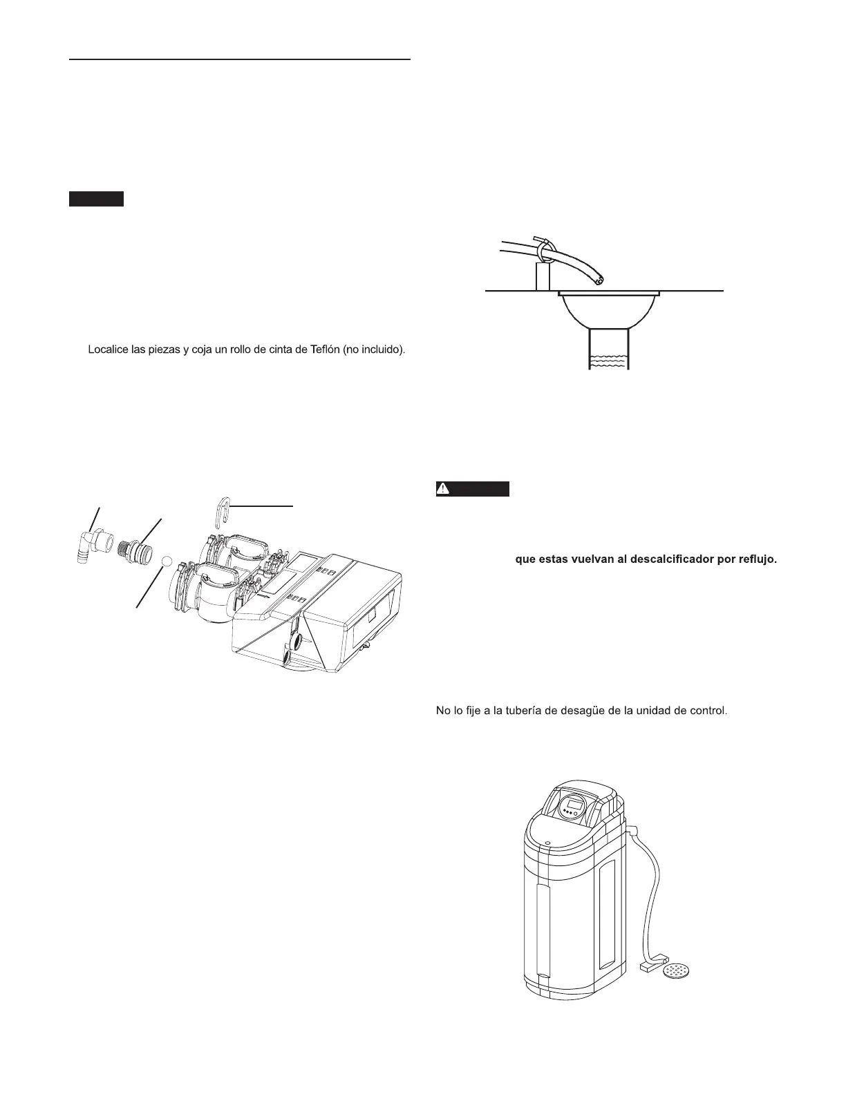 del desagüe. Utilice un racord adaptador adecuado con una