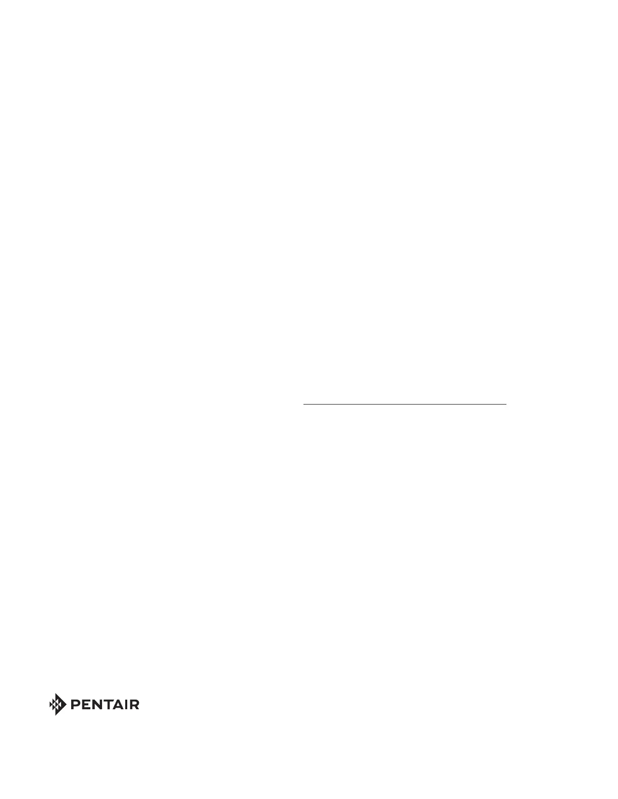 P: 262.238.4400 | PENTAIR.COM | CUSTOMER CARE: 800.279.9404 | tech-support@pentair.com
