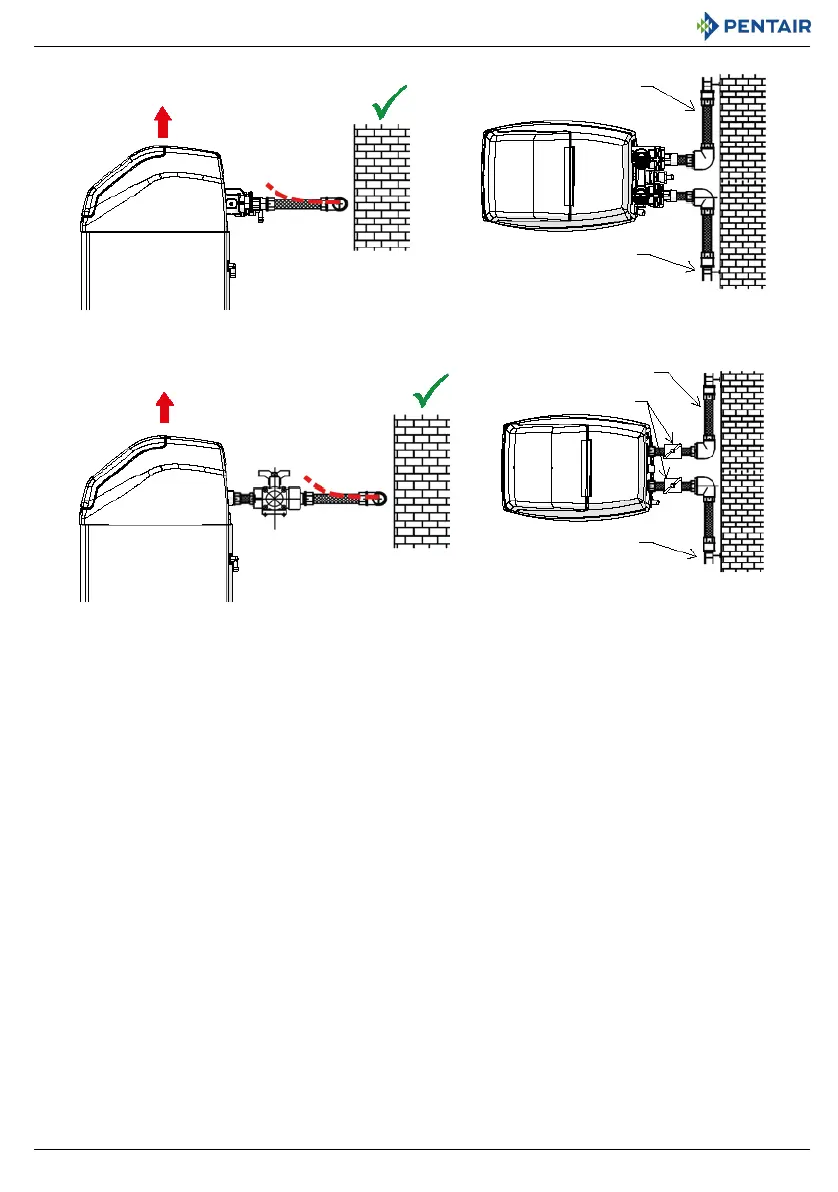 • übermäßig lange und nicht gestreckte flexible Leitungsanschlüsse belasten die Ventil- und Behälterbaugruppe zusätzlich, wenn das
