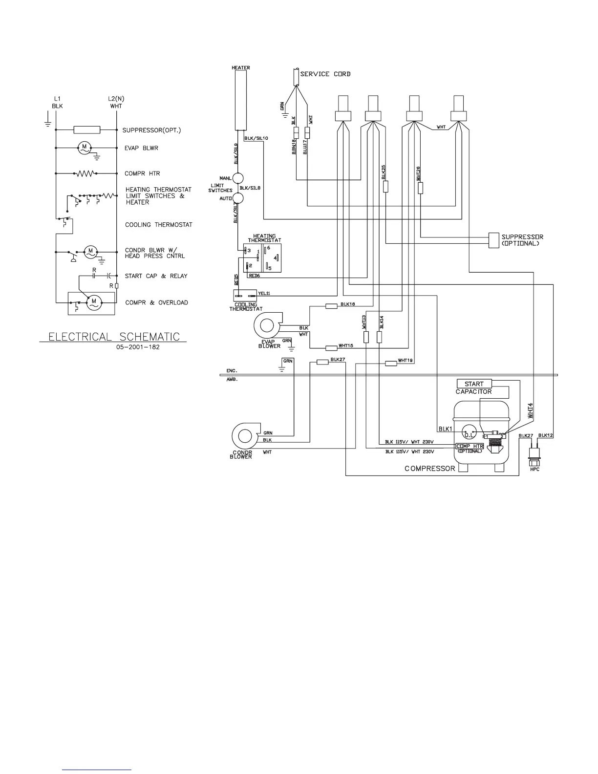 WIRE DIAGRAM AND SCHEMATIC, 115 V, WITH HEAT