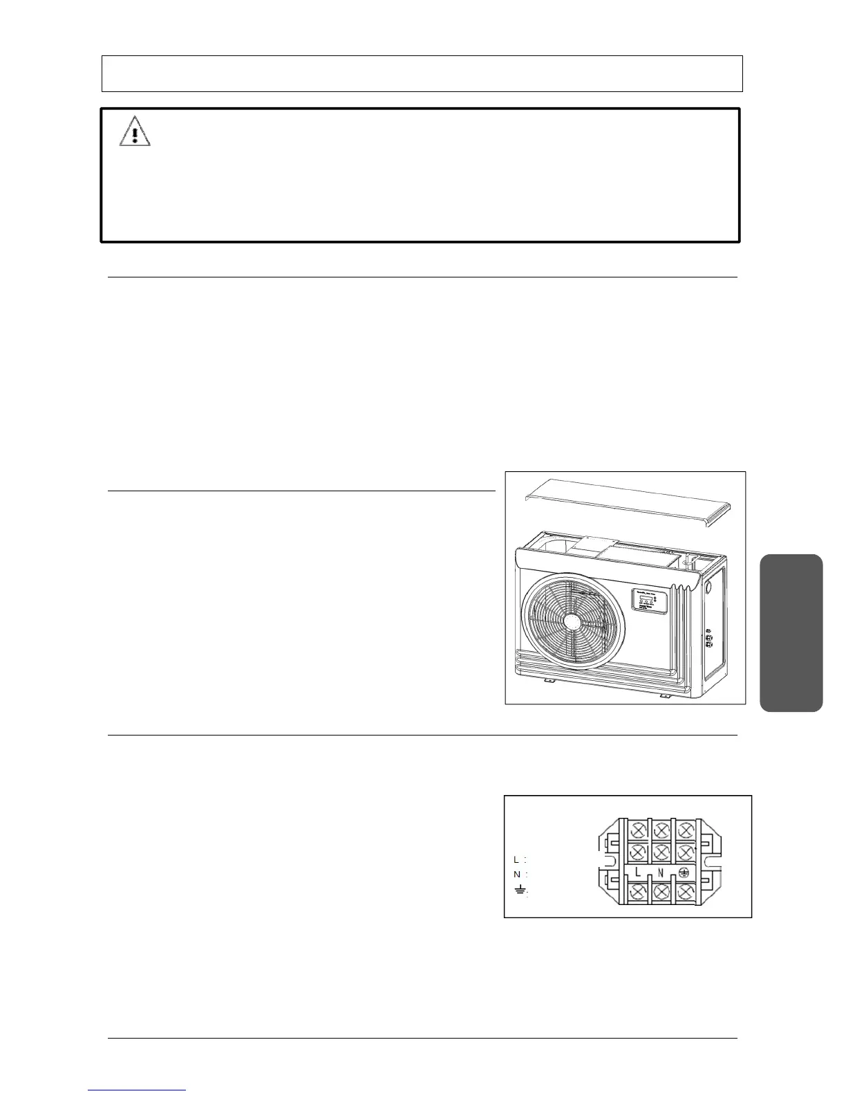Deze warmtepomp is voorzien van bedrading waar hoge spanningen doorheen vloeien. Contact met deze draden