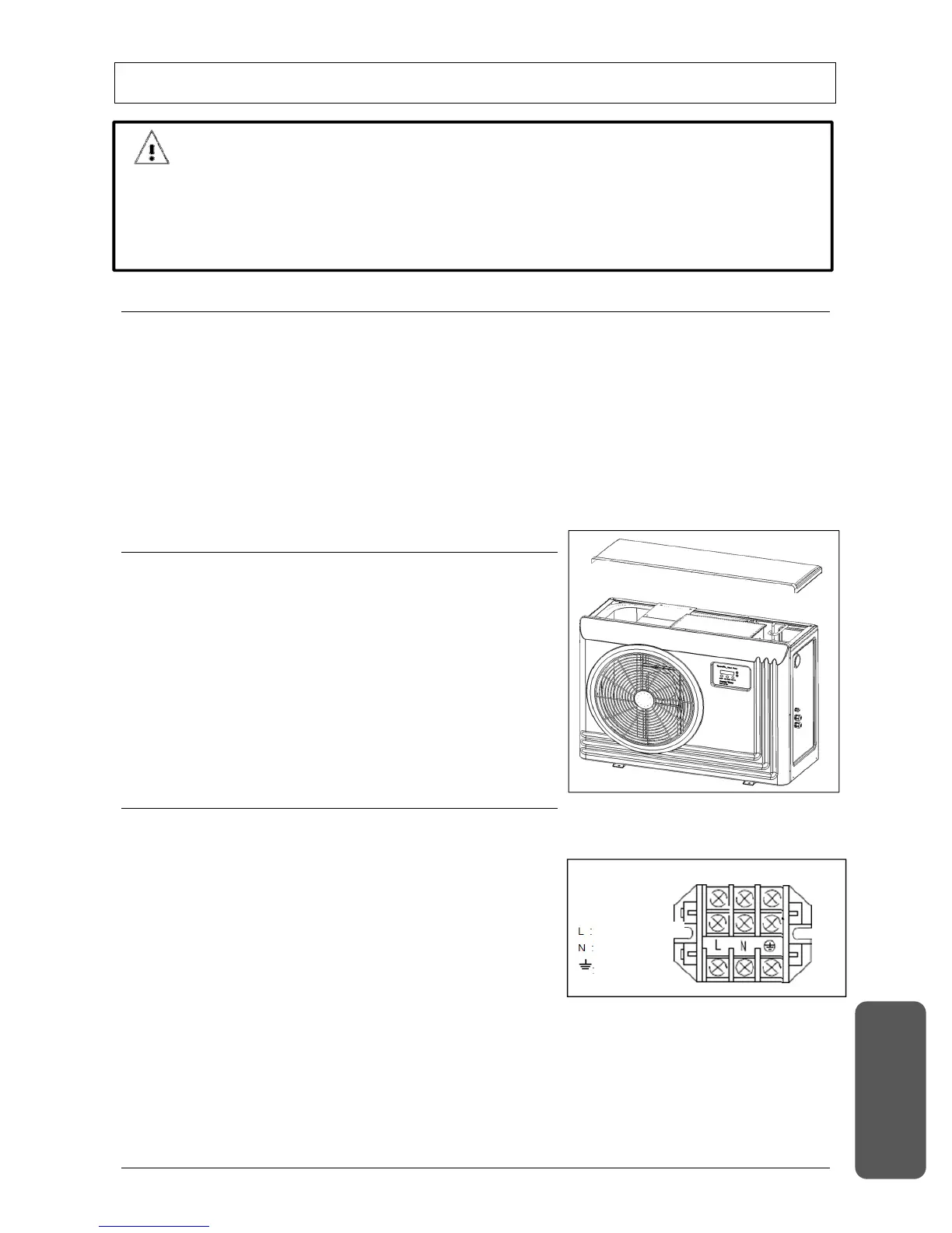 La pompa di calore deve includere strumenti di messa a terra e fissaggio. All’interno dello scomparto elettrico della
