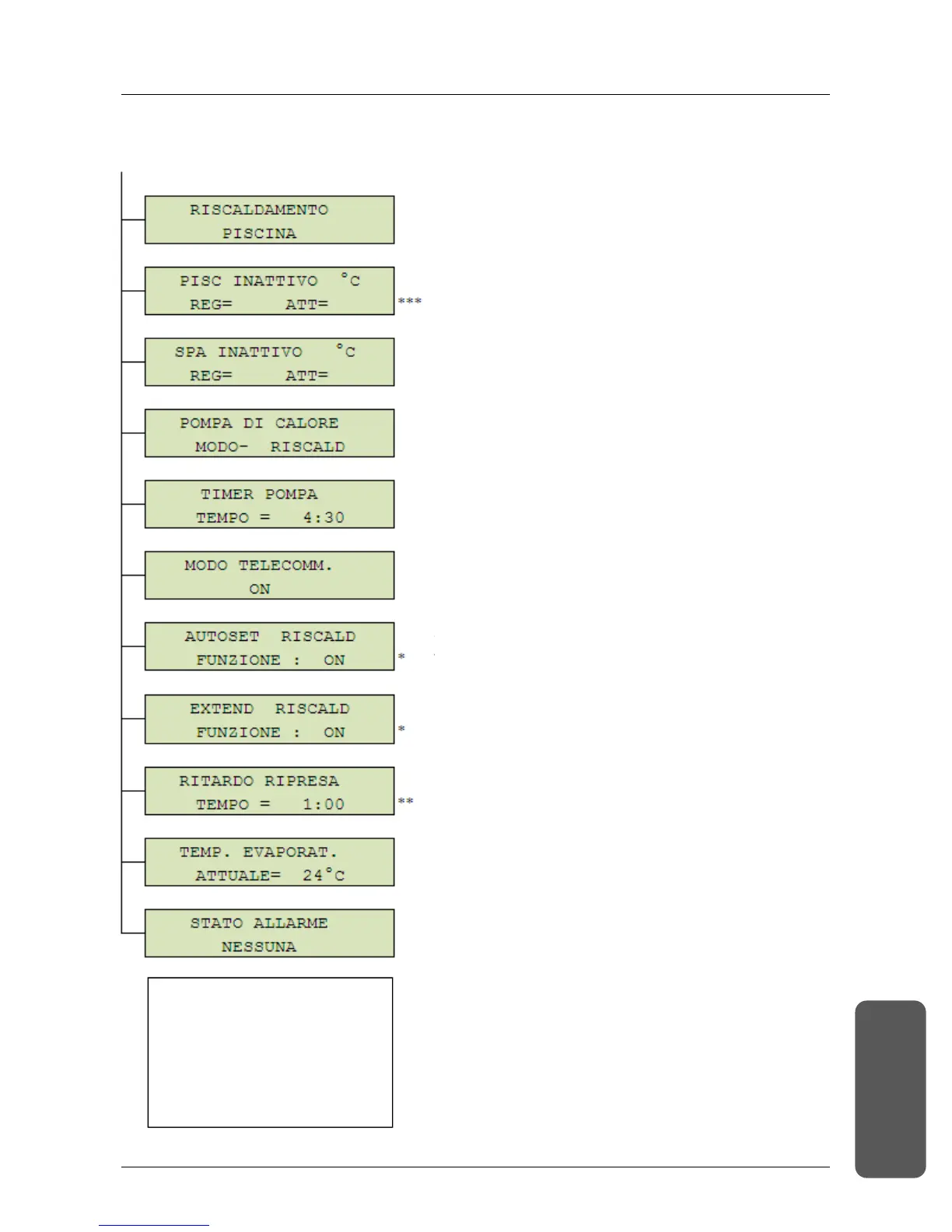 2. Schermato di funzionamento piscina e vasca idromassaggio