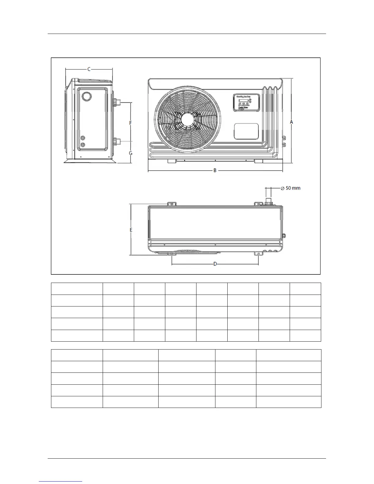 Modèle A mm B mm C mm D mm E mm F mm G mm