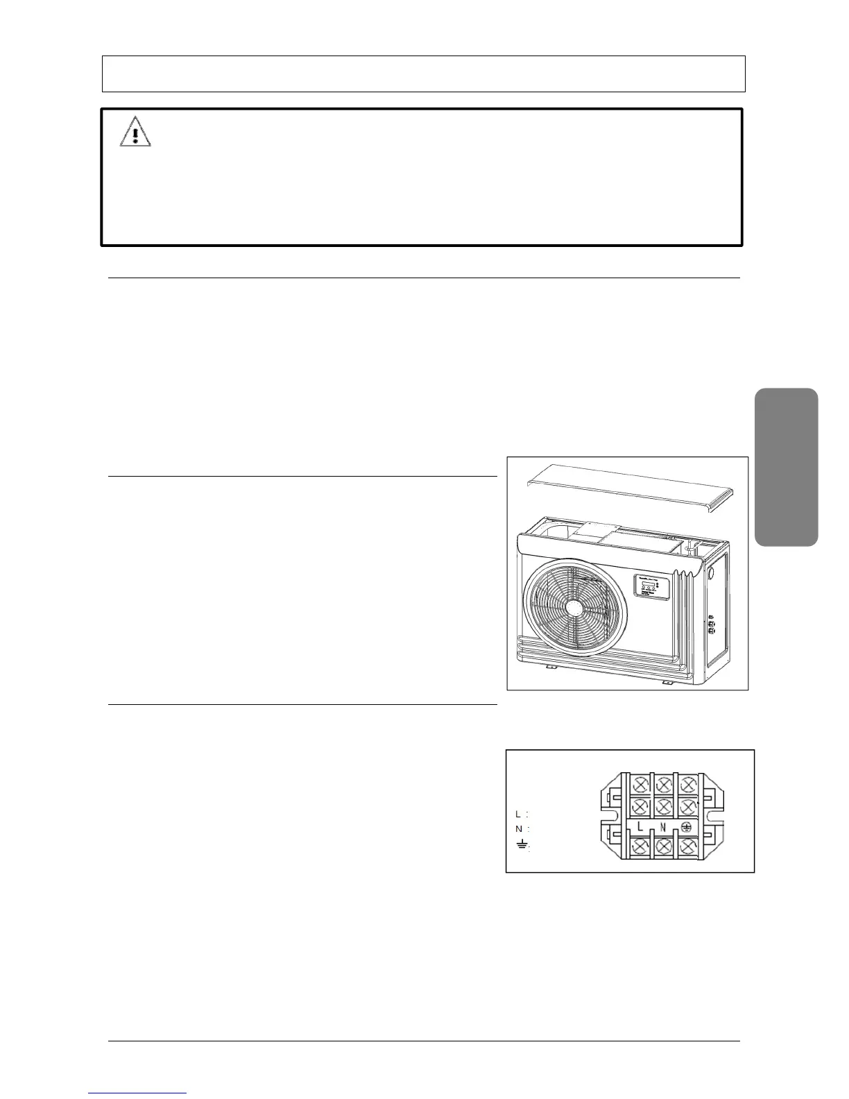 Diese Wärmepumpe enthält Kabel, die unter Hochspannung stehen. Eine Berührung dieser Leitungen kann zum Tod