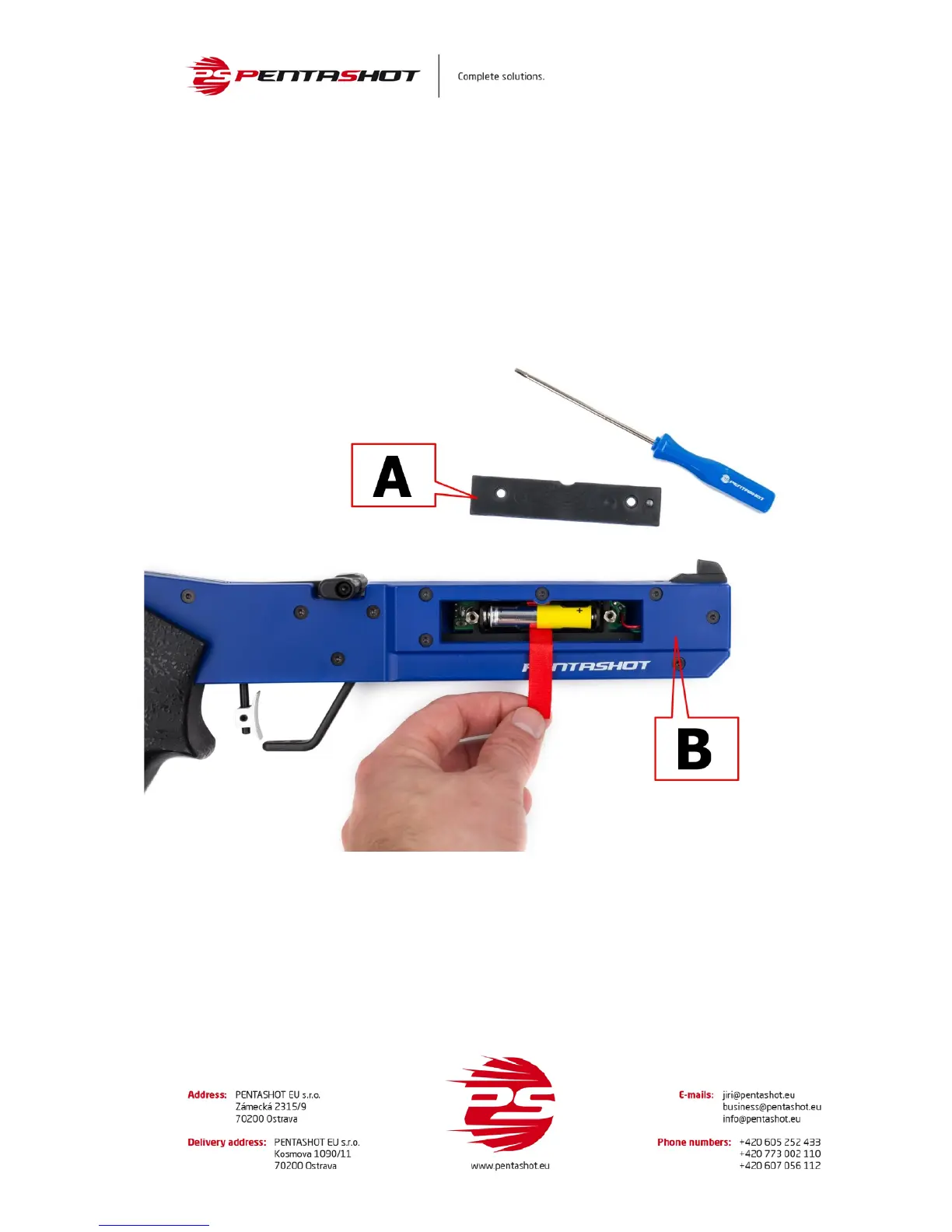 Remove the battery cover (A) from the pistol body (B).