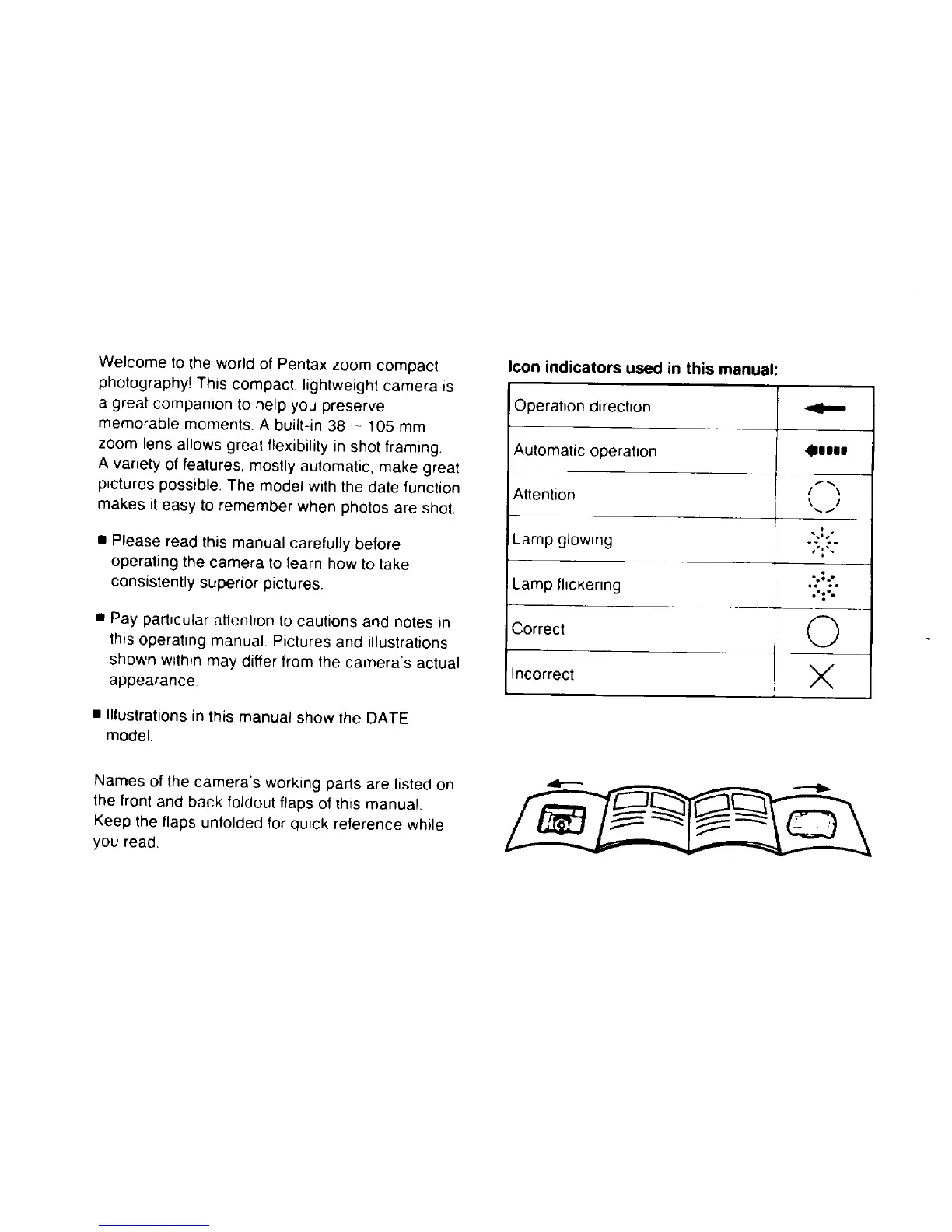Pentax 105 Super - Introduction; Icon Indicators Used in This Manual