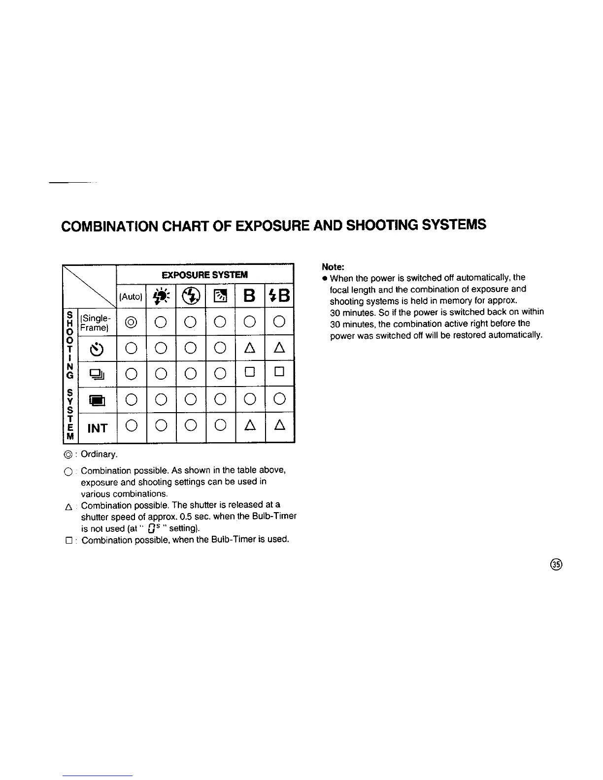 Pentax 105 Super - Exposure and Shooting System Combinations