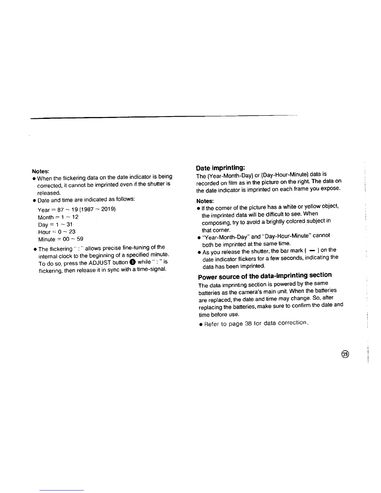 Pentax 105 Super - Correcting and Imprinting Data
