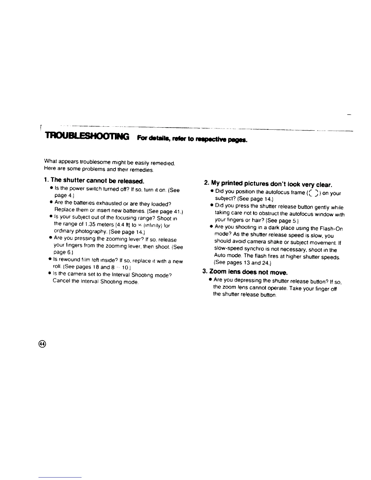 Pentax 105 Super - Troubleshooting; Shutter Cannot Be Released