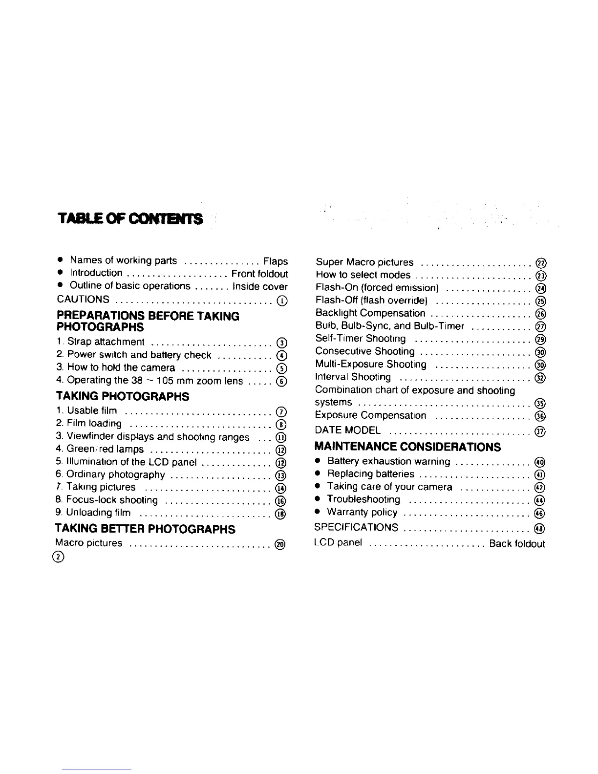 Pentax 105 Super - Table of Contents