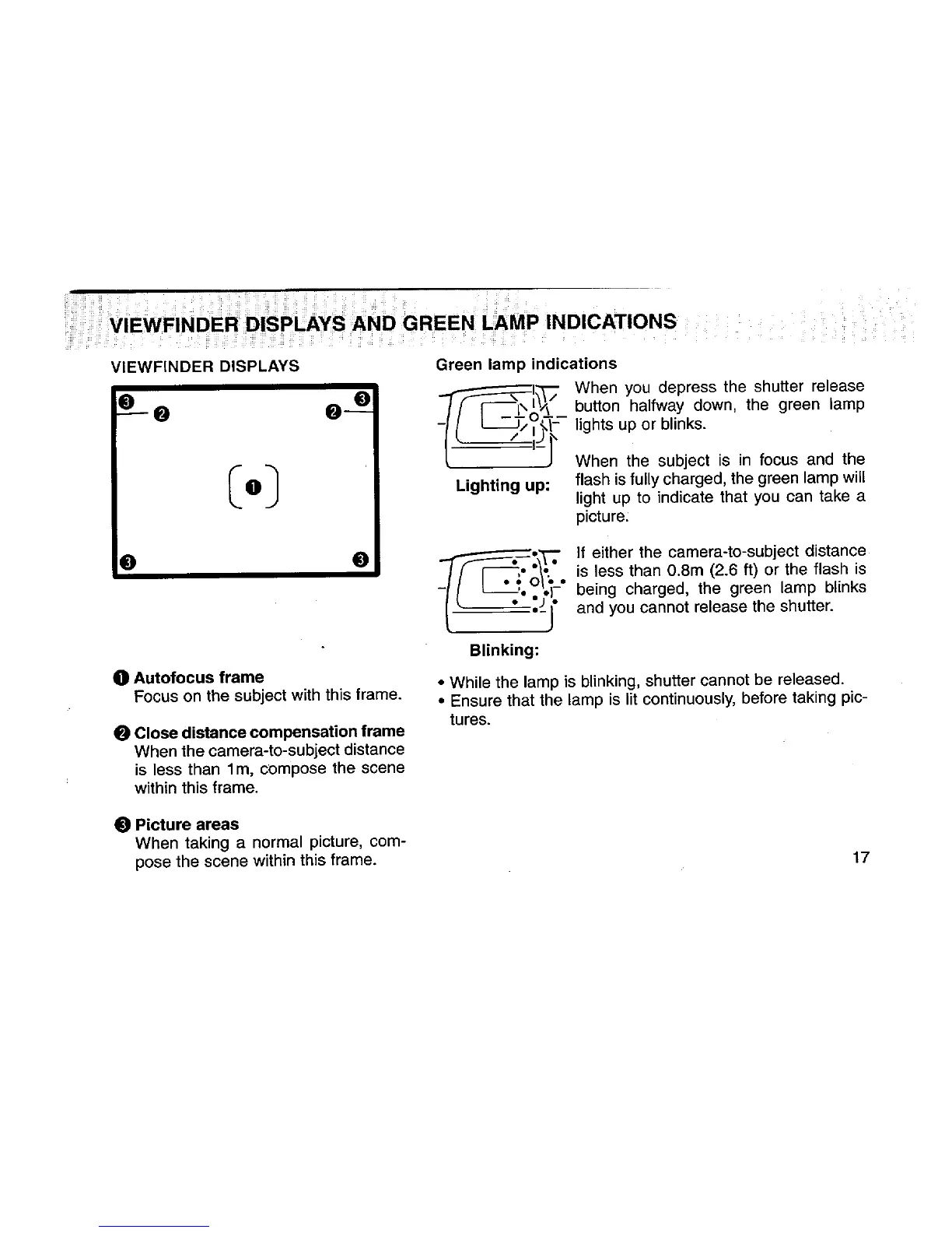 Pentax 115V - Viewfinder Displays and Green Lamp Indications
