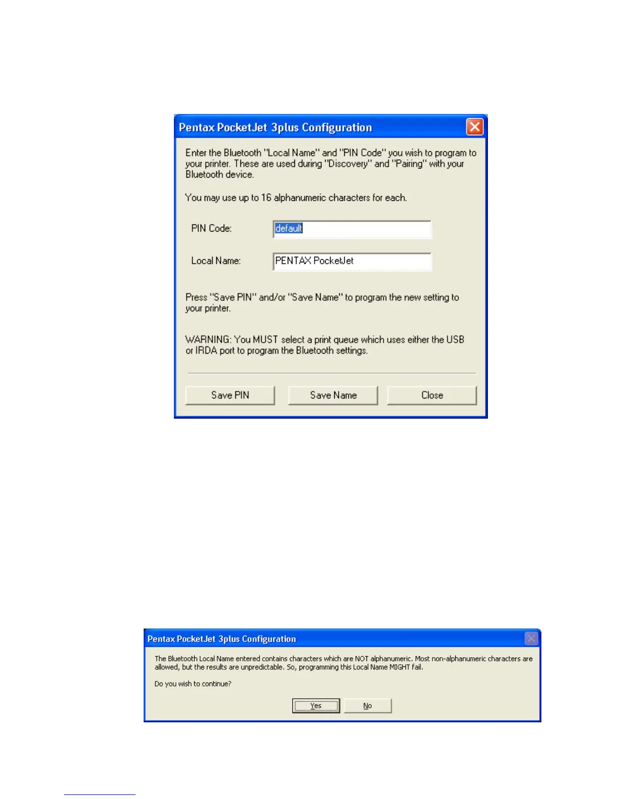 Both the PIN code and the Local Name must use alphanumeric